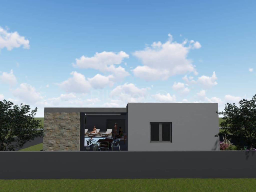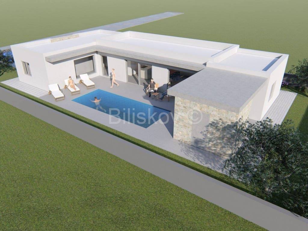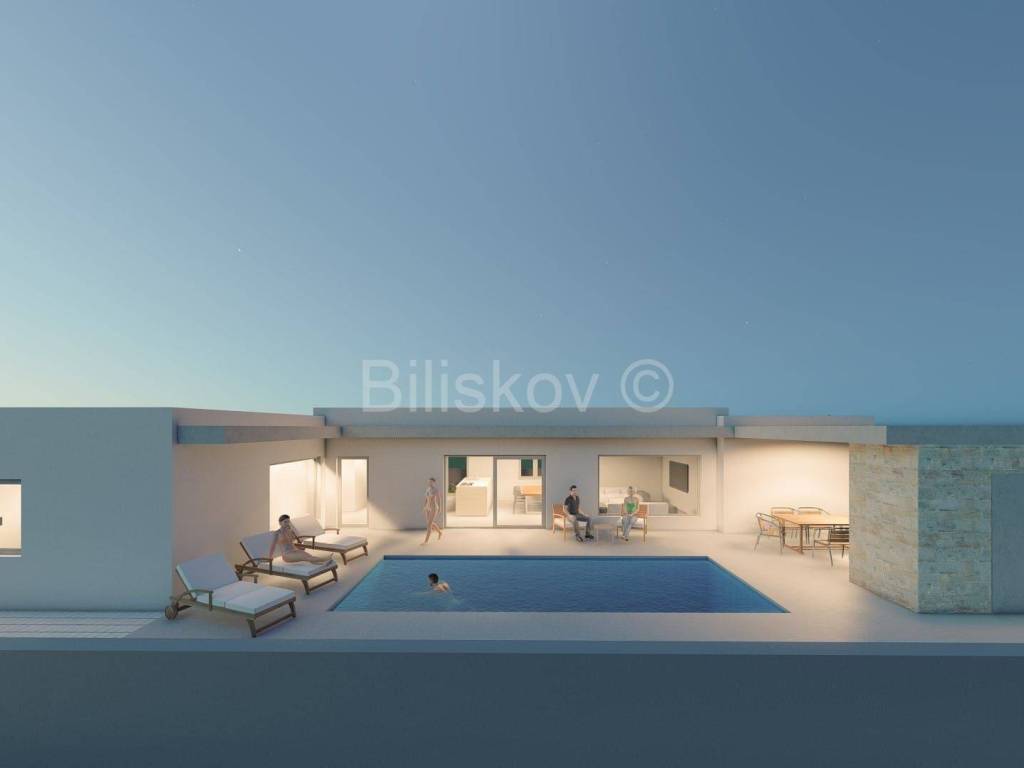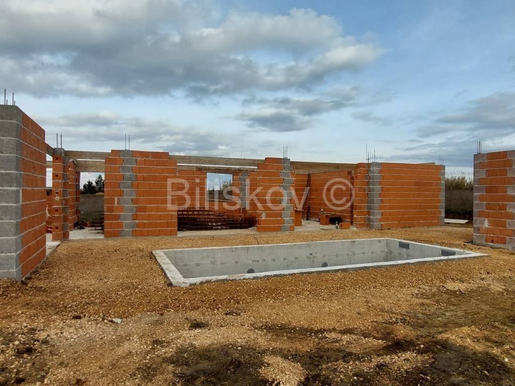 Zadar, Privlaka - A villa under construction, one-story, with an area of 116 m2, featuring three bedrooms, a spacious garden, and a pool.