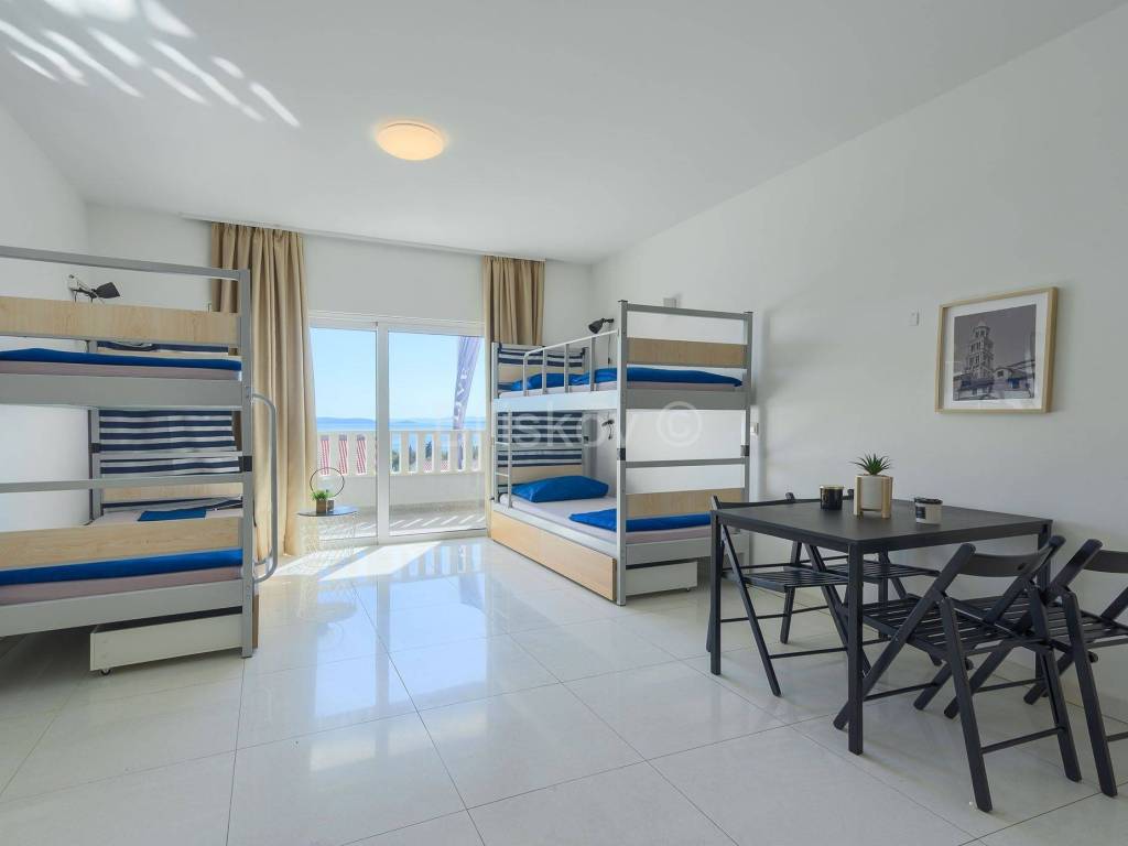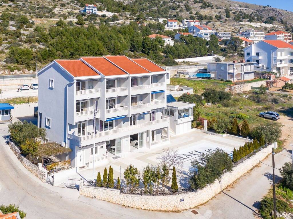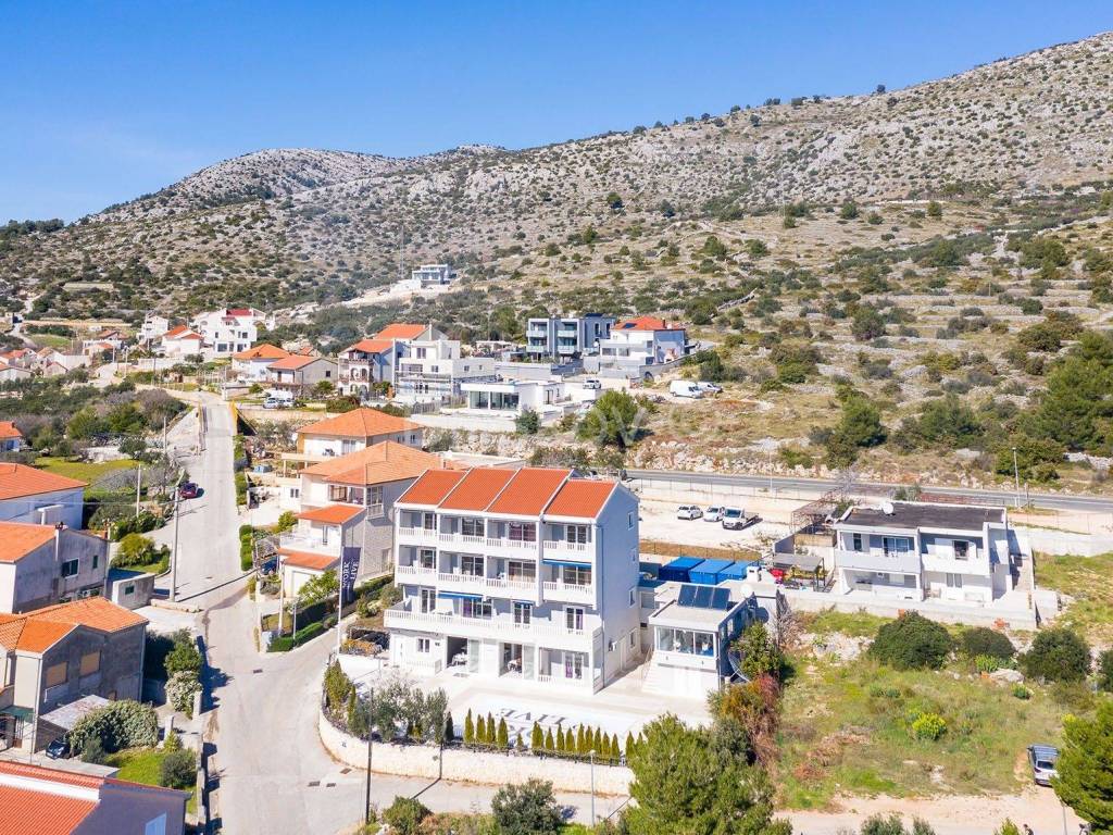 Seget, Seget Donji, samostojeća kuća sa apartmanima površine887.6m2 na 4 etaže na parceli površine 932 m2 + dodatna građevinska parcela površine 883 m2.
