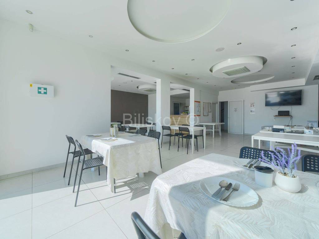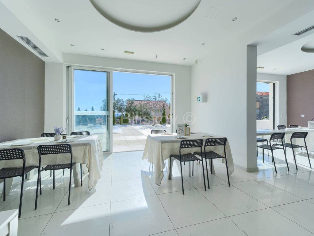 Prizemlje površine 276,87m2 sastoji se od 2 zasebna apartmana sa spavaćom sobom i kupaonicom te velikog prostora za caffe bar/blagavaonicu.