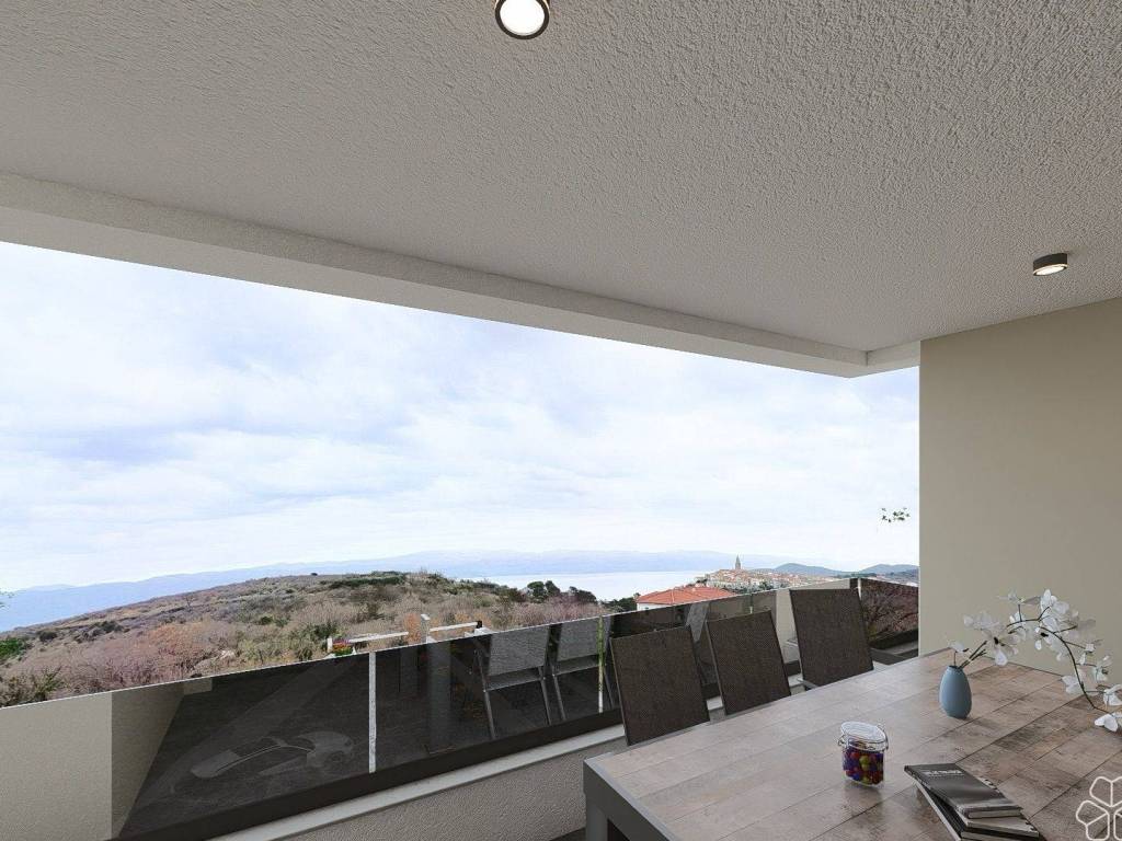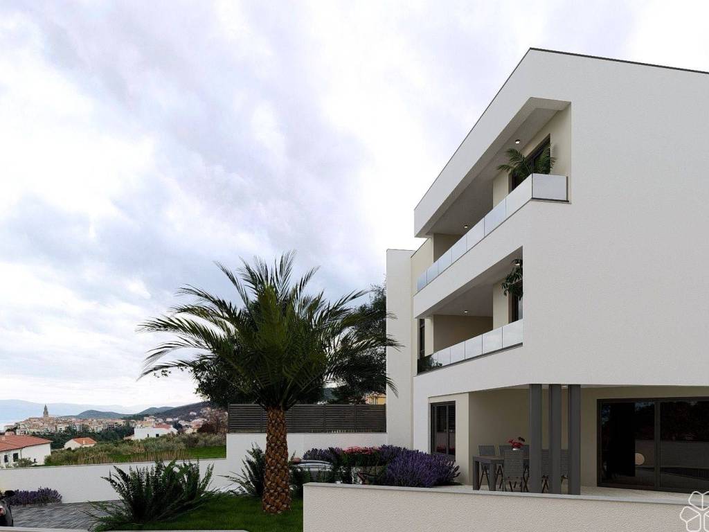 In a peaceful part of Vrbnik, one of the most unique and authentic towns on the island of Krk, a modern residential building is under construction. The project consists of two multi-family buildings with a total of six apartments, carefully designed to combine functionality, tranquility, and a modern way of living. The building is located on a gentle elevation above the old town of Vrbnik, surrounded by nature and offering panoramic views of the sea and the town.