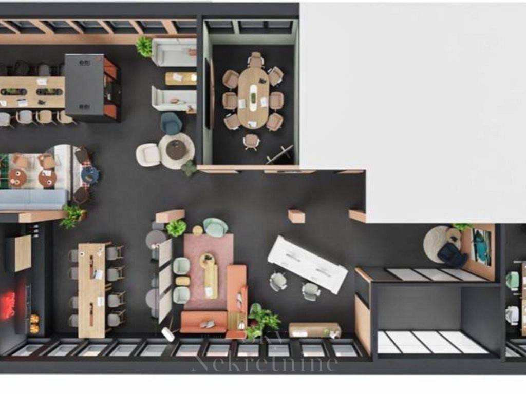 U ponudi je veći uredski prostor namijenjen za tim do 16 osoba. Ured je opremljen visokokvalitetnim Haworth ergonomskim namještajem i spreman za useljenje bez dodatnih ulaganja.