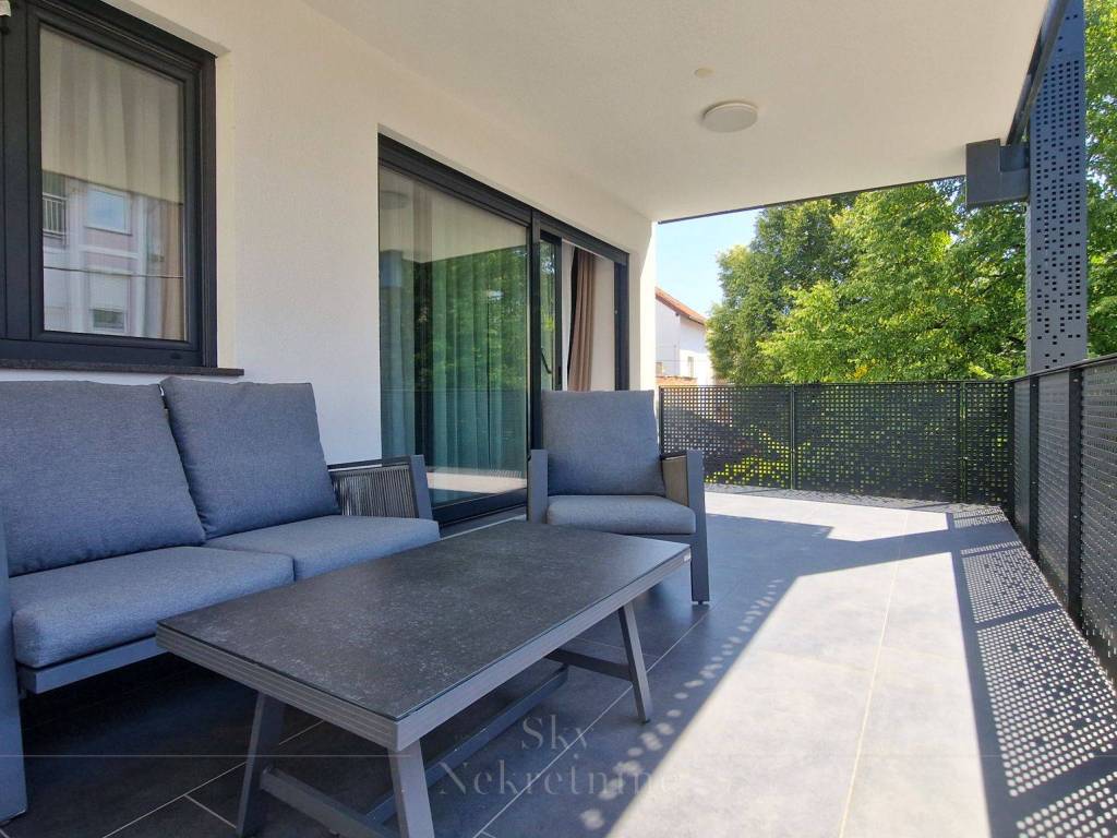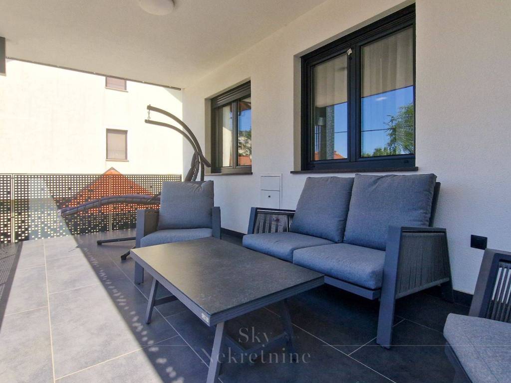 Stan površine 91m smješten je na 1. katu novogradnje iz 2023. godine (zgrada ukupno ima četiri kata). Raspored uključuje: prostrani dnevni boravak, kuhinju i blagovaonicu, tri spavaće sobe, kupaonicu i zaseban toalet. Stan također ima natkrivenu, prostranu terasu koja je idealna za boravak tijekom cijele godine.