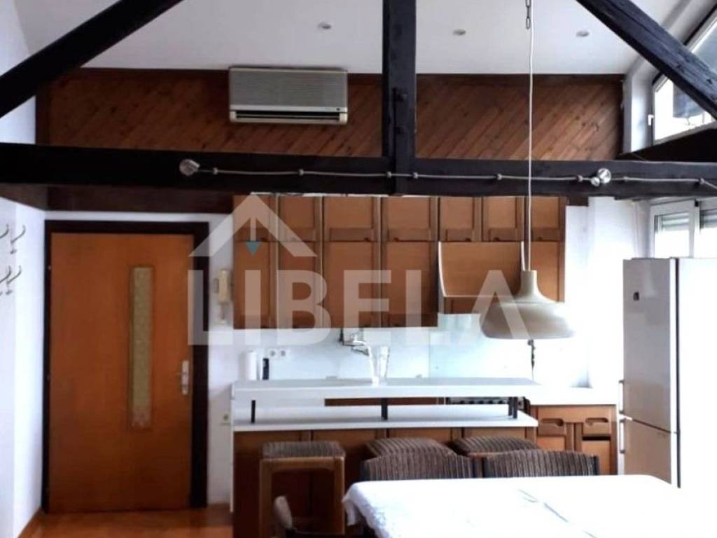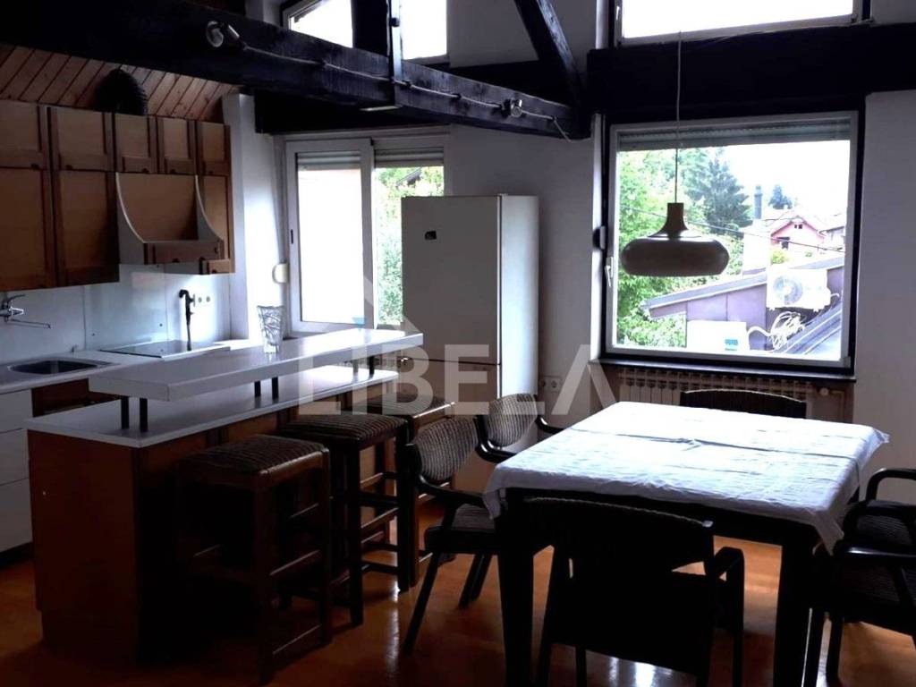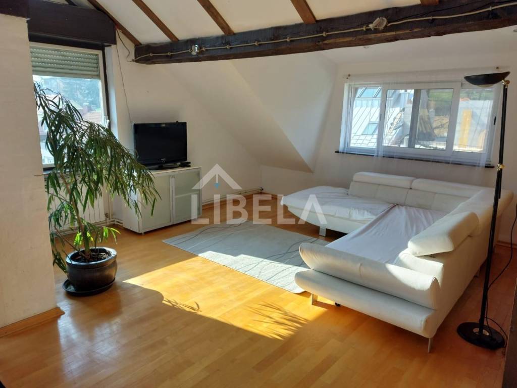 Četverosoban dvoetažni stan ukupne neto površine 122,55 m2 na 1.katu i u potkrovlju manje stambene zgrade sagrađene 1967.g.