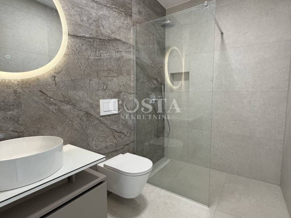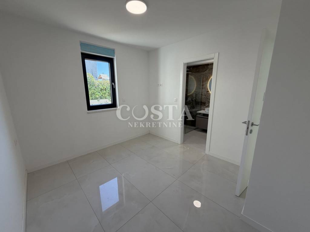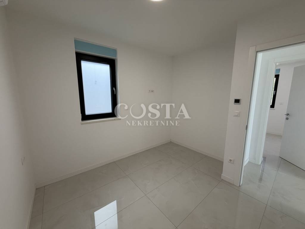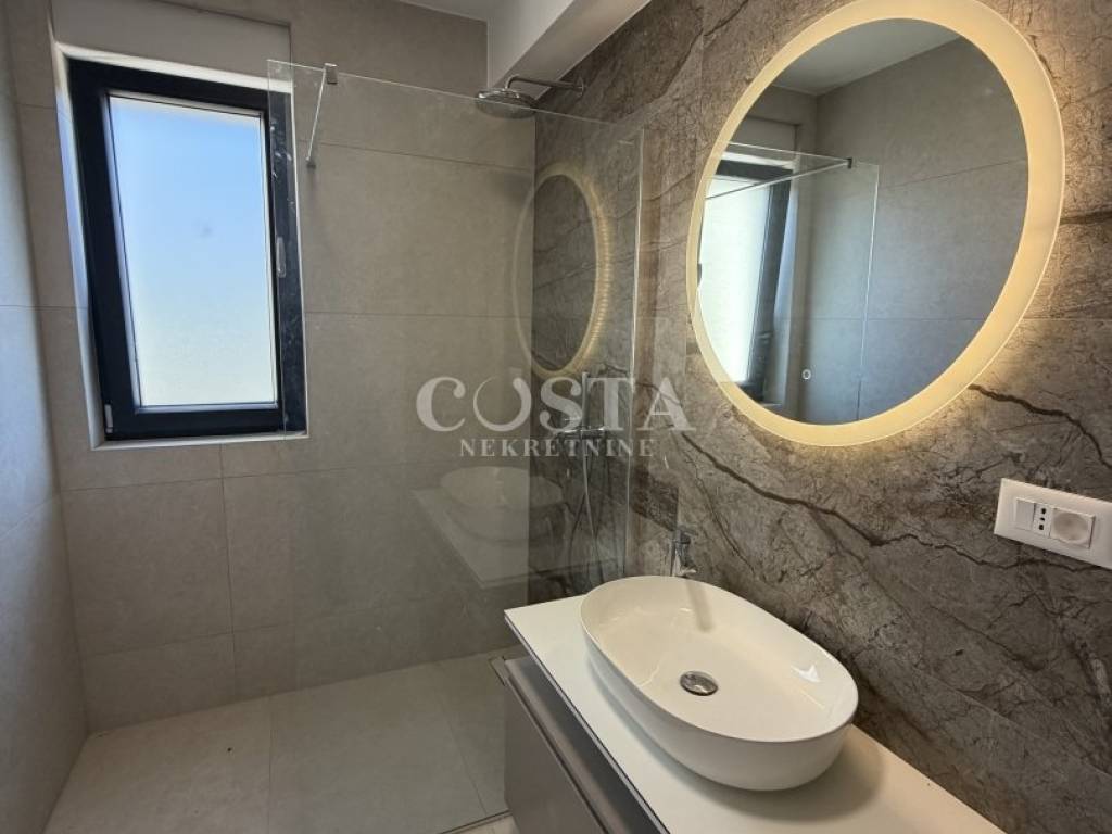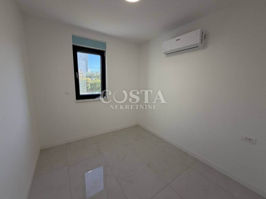 A beautiful apartment is for sale in a new building in Diklo in Zadar, 150 m from the sea. The apartment with a total living area of 97 m2 is located on the ground floor of a smaller residential building with six units and an elevator. The apartment consists of a living room, kitchen and dining room, three bedrooms, two bathrooms, laundry room and hallway and a loggia. The apartment also has a garden and two parking spaces in the courtyard of the building. The total usable area of the apartment together with all the accessories is 276.95 m2 (K.V. 117.58 m2).