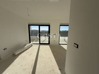 A penthouse under construction is for sale in Sukošan near Zadar. The apartment with an area of ​​61.67 m2 is located on the second floor of a small residential building with 6 units. It consists of a spacious living room, kitchen and dining room, two bedrooms, bathroom, hallway and terrace of an additional 16.56 m2. The apartment also has a spacious roof terrace of 68.61 m2 and a parking space in the courtyard of the building. The total sales area of ​​the apartment together with all the accessories is 91.69 m2. The apartment is air-conditioned, and underfloor heating has been installed.