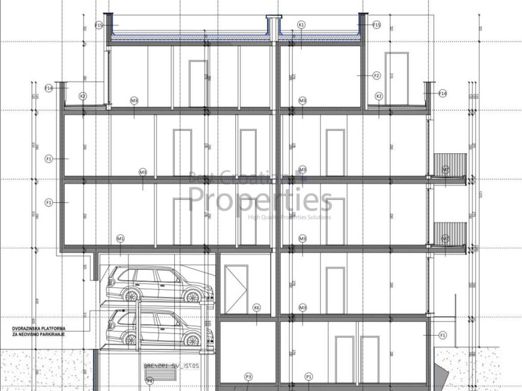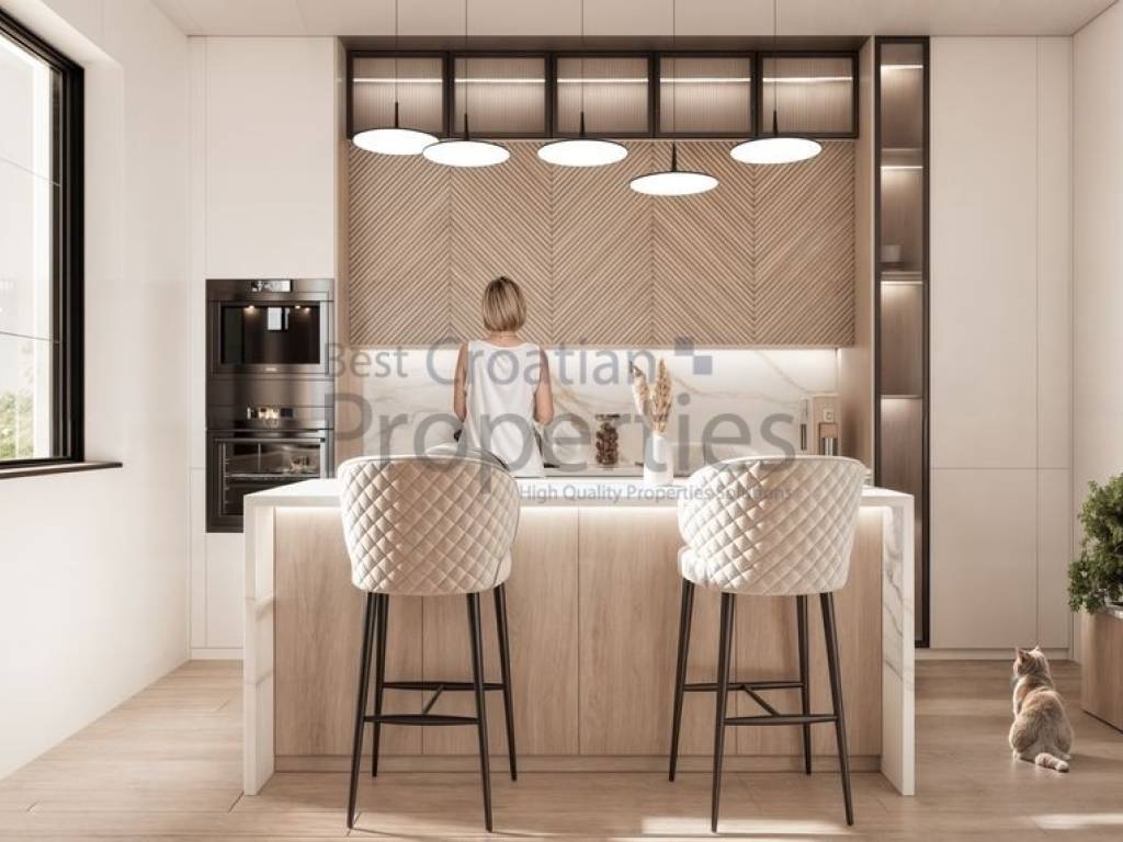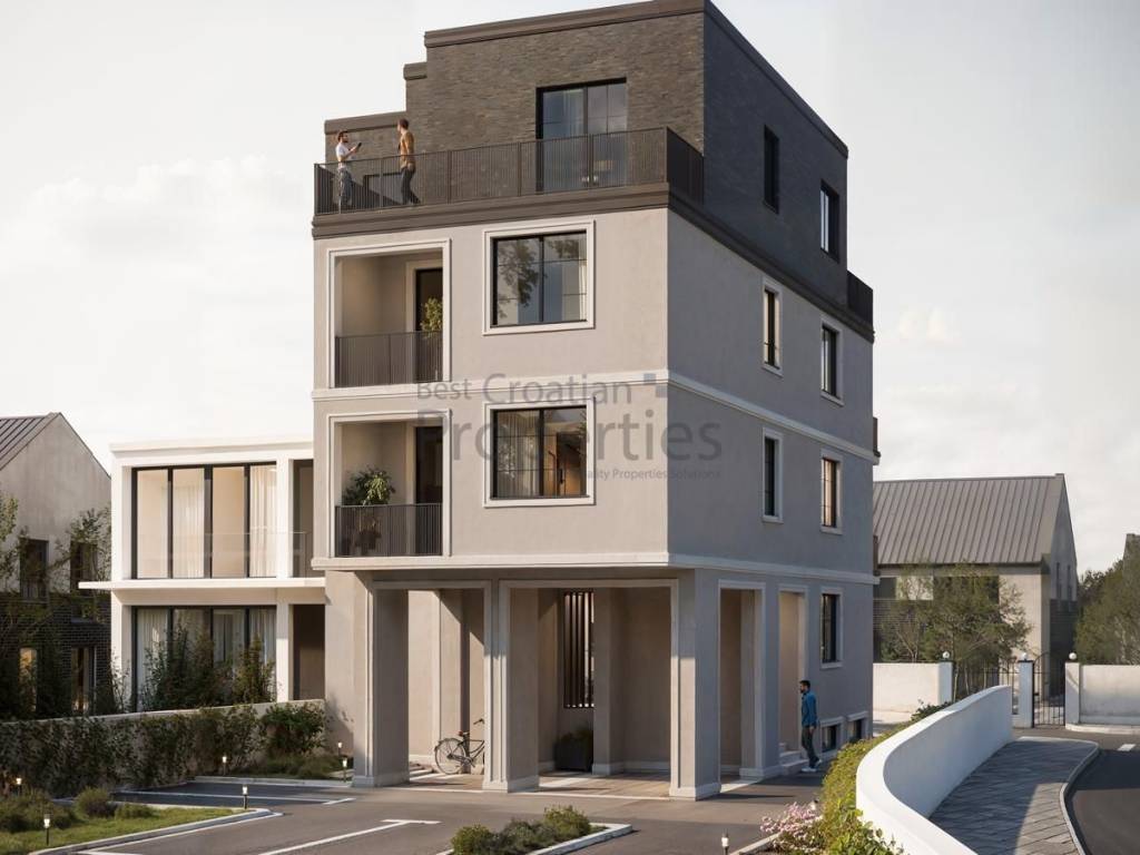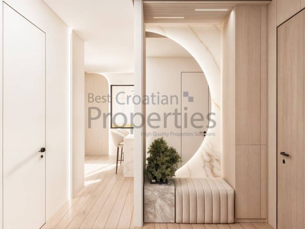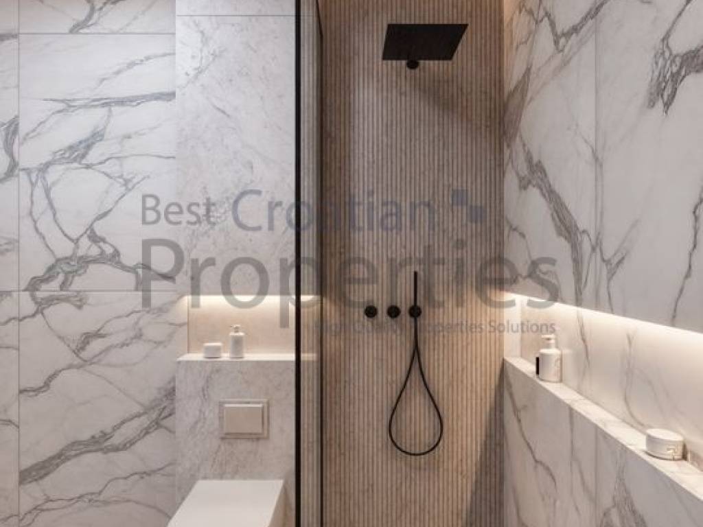 Ovaj moderni objekt visoke klase unutarnjeg uređenja izveden je s velikom pažnjom pri odabiru materijalai rasporeda stanova. Predivan izgled zgrade sa ciglicama na fasadi, lift ulazi u sam penthaus.