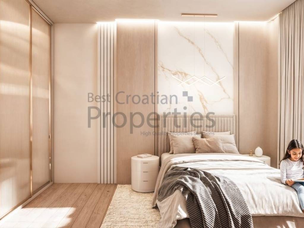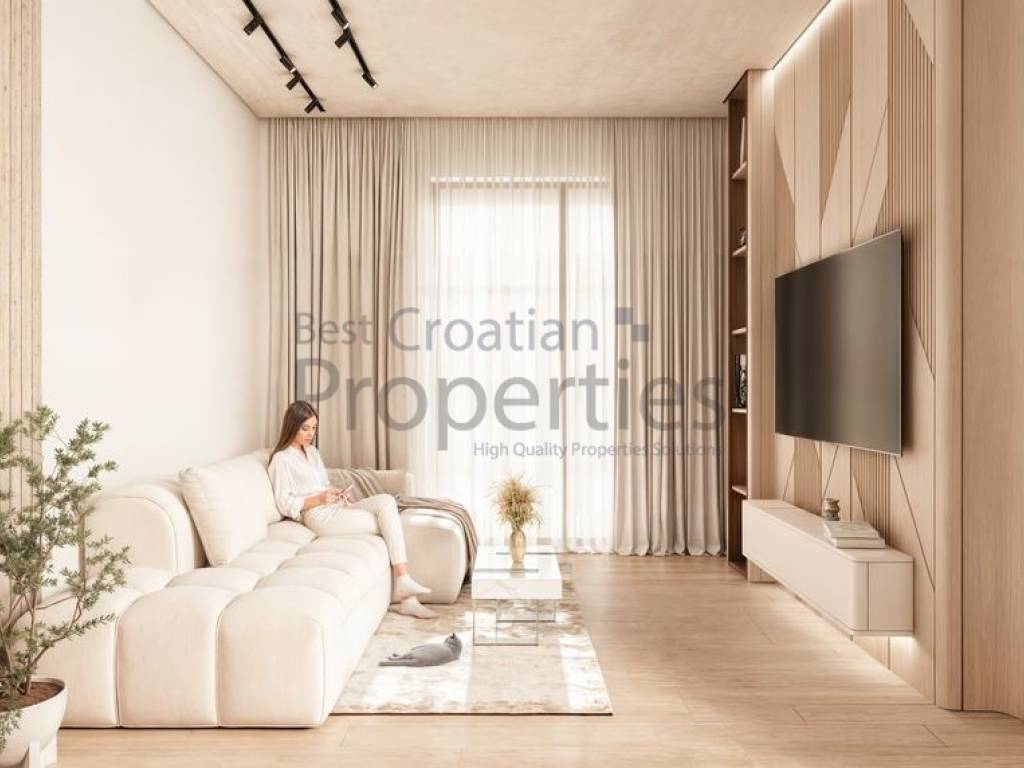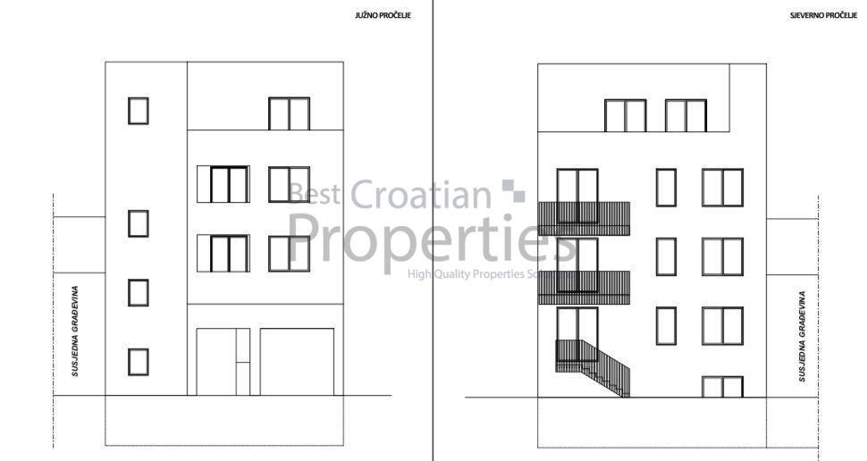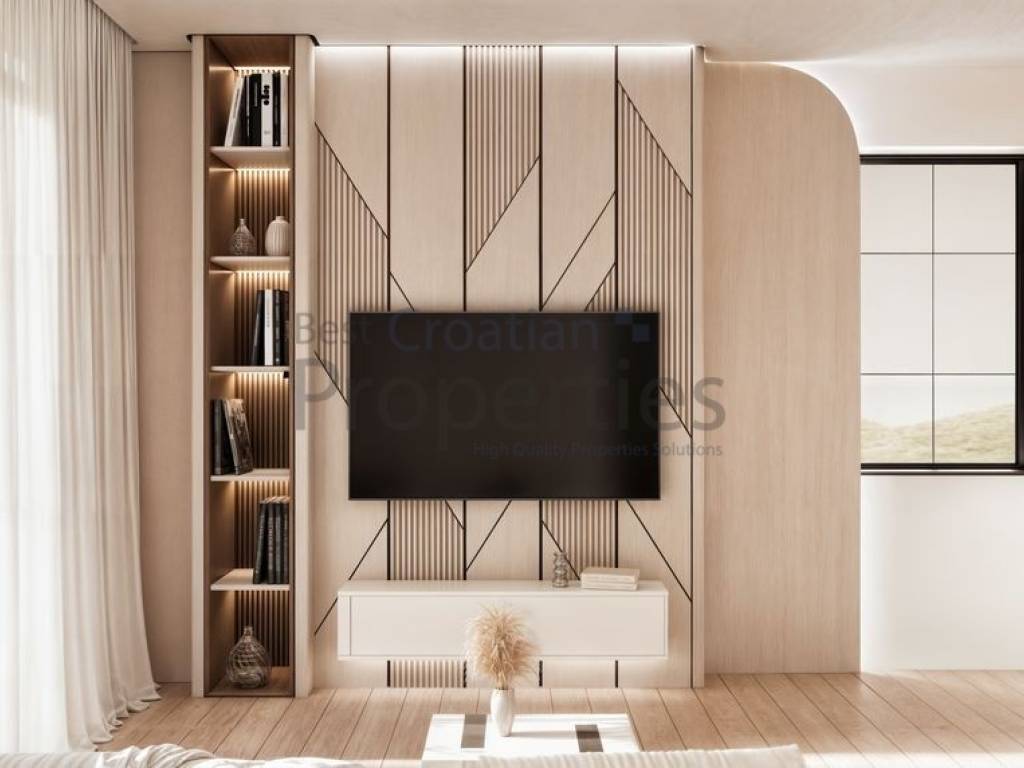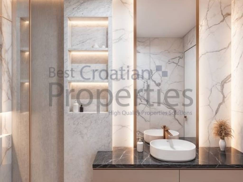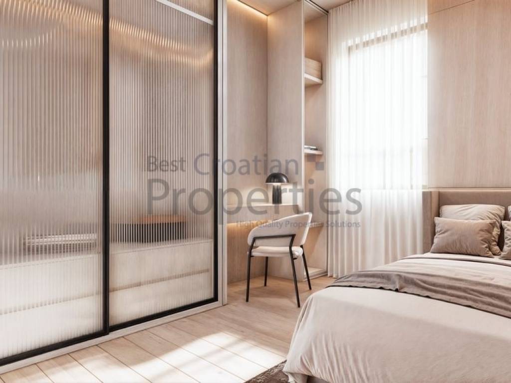 Ovaj moderni objekt visoke klase unutarnjeg uređenja izveden je s velikom pažnjom pri odabiru materijalai rasporeda stanova. Predivan izgled zgrade sa ciglicama na fasadi, lift ulazi u sam penthaus.