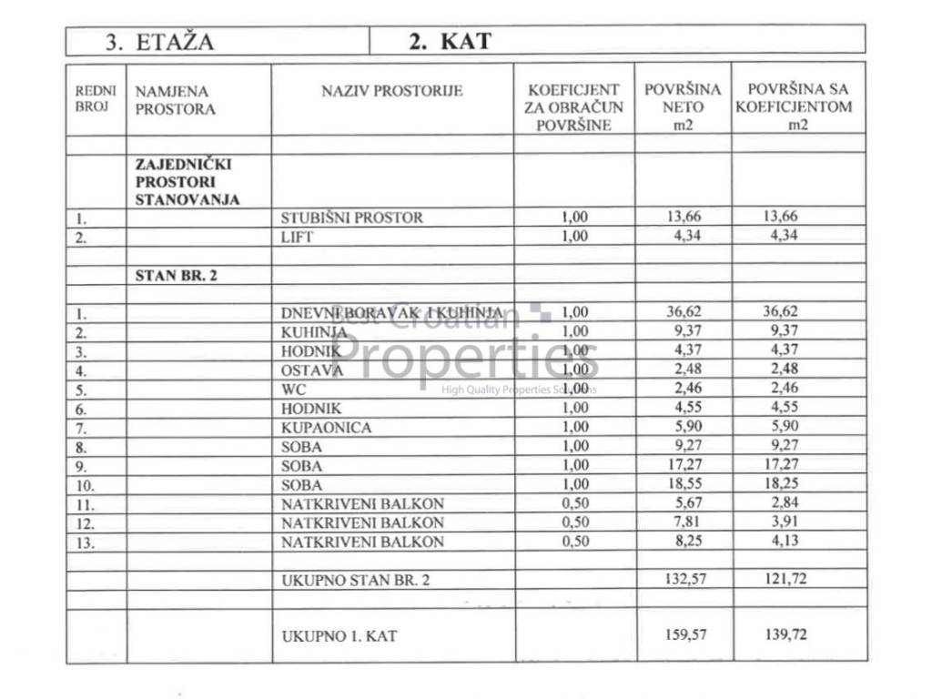 Ukupna kvadratura sa koeficijentima iznosi 143.50m2.