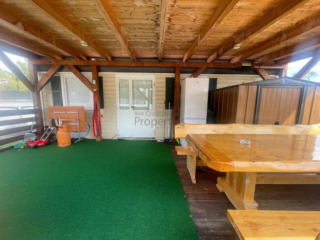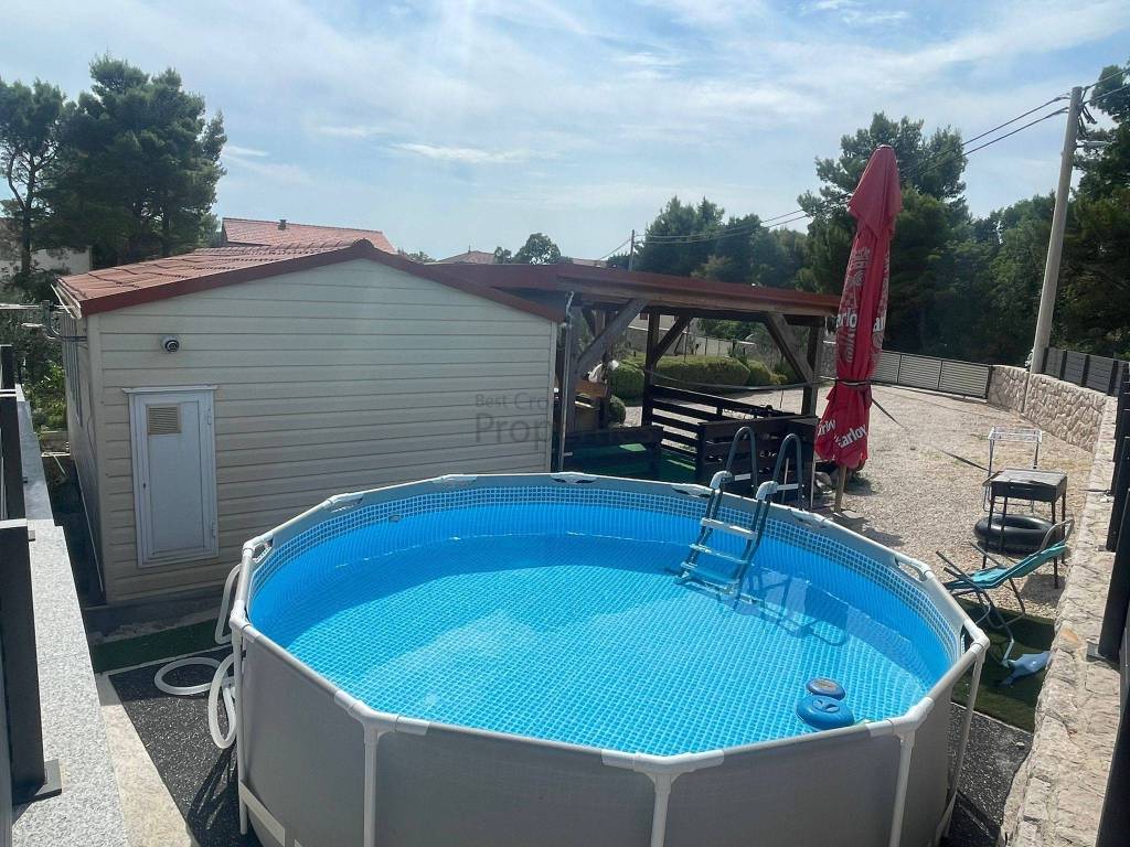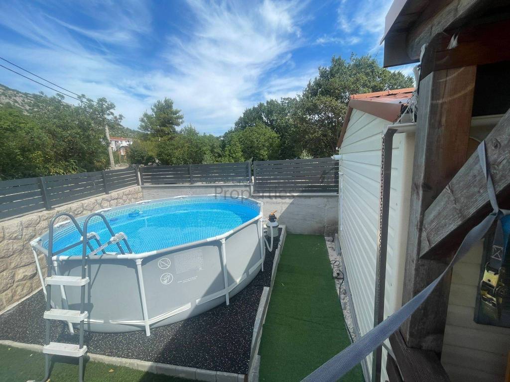 Na manjoj čestici postoji montažna kućica sa bazenom koja je uključena u cijenu.