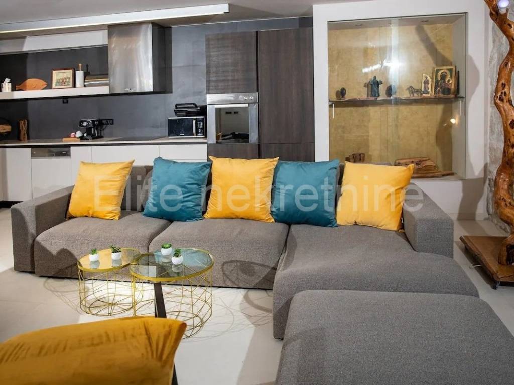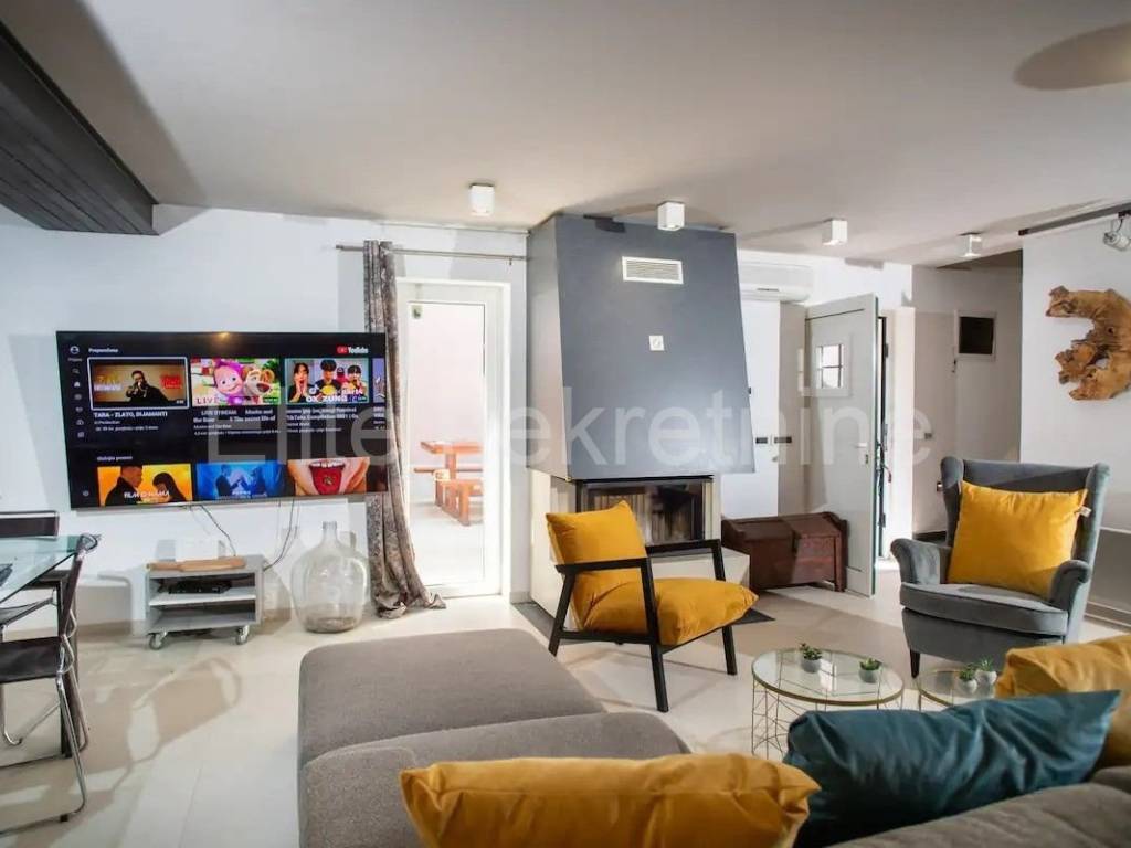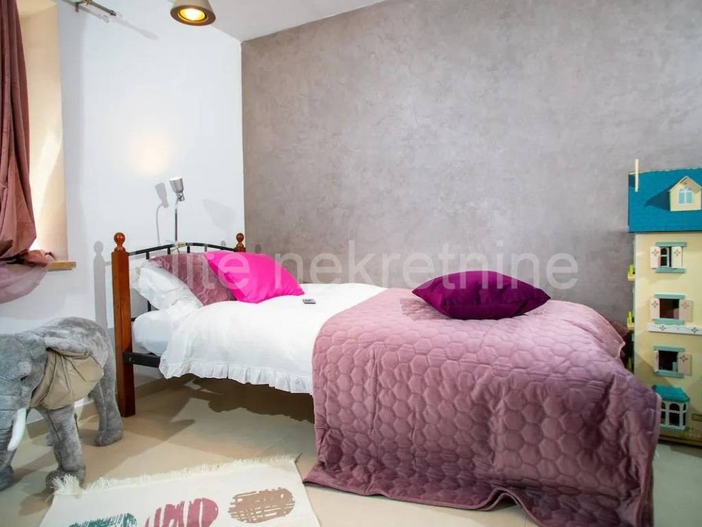 We are selling a beautifully decorated house in the center of Rovinj, with its own parking space.The house can accommodate 7 people.On the ground floor there is a living room with a fireplace, a kitchen with a dining area, a bathroom, a separate toilet and another room that can be a bedroom, a children's playroom, and a small storage room.On the first floor there are 2 bedrooms, 2 bathrooms, a separate toilet and a storage room.The house has a spacious terrace protected from view.