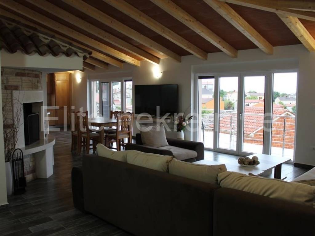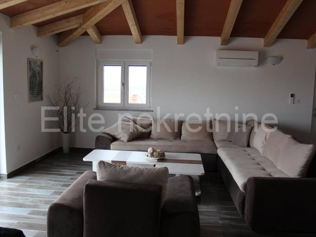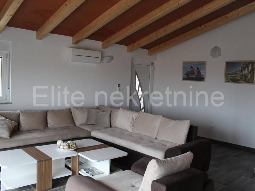 Kuća se sastoji od prizemlja, 1. kata i 2. kata s kojeg se pruža pogled na more.