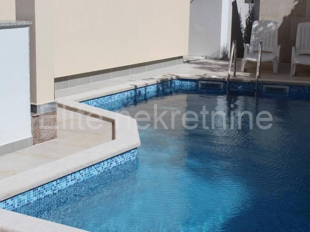 Svaki apartman ima svoj ulaz i balkon/terasu, moderan namještaj izrađen od visokokvalitetnih materijala, privatno parkiralište, vanjski bazen (10x4m) na korištenje, sa vanjskim tušem, te kamin.