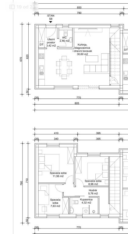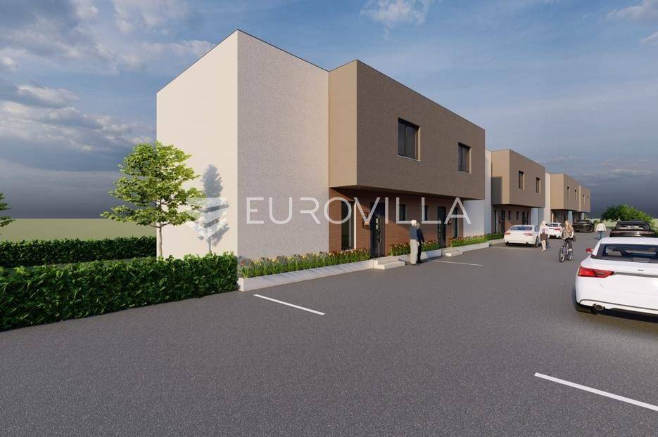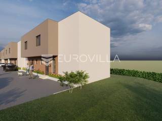 Na mirnoj lokaciji u Brezovici nalazi se novi projekt luksuznih kuća u nizu. U projektu je ukupno osam kuća, a svaka ima vlastiti vrt i pripadajuća parkirna mjesta, što pruža idealne uvjete za ugodan obiteljski život u zelenom okruženju.Kuća K8 ima stambenu površinu od 84,21 m², dok ukupna obračunska površina iznosi 120 m². Pripada joj vrt veličine 180 m² te ukupno četiri vanjska parkirna mjesta površine 61,13 m².Prizemlje ukupne površine 40,47 m² sastoji se od ulaznog prostora površine 3,42 m², sanitarnog čvora veličine 2,40 m², spremišta od 4,05 m² te velikog dnevnog boravka s kuhinjom i blagovaonicom veličine 30,60 m². Iz dnevnog dijela omogućen je izlaz na terasu i vrt.Na katu, ukupne površine 43,74 m², nalazi se stubište i hodnik veličine 11,27 m² iz kojeg se pristupa trima spavaćim sobama. Površine soba iznose 8,96 m², 11,56 m² i 7,63 m². Na katu se također nalazi kupaonica površine 4,32 m².Kuće se izvode zidanom konstrukcijom, s knauf pregradnim zidovima i termo fasadom od stiropora debljine 10 cm. Ugrađena je PVC stolarija s troslojnim staklom te roletama na struju. Grijanje je predviđeno putem dizalice topline s podnim grijanjem u cijeloj kući, dok je u dnevnom boravku ugrađen inverter klima uređaj. Kupaonice su opremljene keramikom prve klase, dok je u ostatku kuće predviđen parket. U fazi izgradnje ostavljena je mogućnost odabira podnih obloga u vrijednosti do 20 €/m².Planirani početak izgradnje je u ožujku 2026. godine, a završetak radova predviđen je u svibnju 2027. godine.Moguća je kupnja putem kredita.Lokacija je izvrsno povezana te u blizini nudi sve ključne sadržaje poput škole, vrtića, trgovine i javnog prijevoza.Za sve dodatne informacije stojimo na raspolaganju.