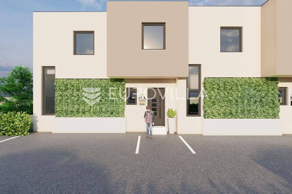 Na mirnoj lokaciji u Brezovici nalazi se novi projekt luksuznih kuća u nizu. U projektu je ukupno osam kuća, a svaka ima vlastiti vrt i pripadajuća parkirna mjesta, što pruža idealne uvjete za ugodan obiteljski život u zelenom okruženju.Kuća K5 ima stambenu površinu od 84,21 m², dok ukupna obračunska površina iznosi 100 m². Pripada joj vrt veličine 47 m² te ukupno dva vanjska parkirna mjesta.Prizemlje ukupne površine 40,47 m² sastoji se od ulaznog prostora površine 3,42 m², sanitarnog čvora veličine 2,40 m², spremišta od 4,05 m² te velikog dnevnog boravka s kuhinjom i blagovaonicom veličine 30,60 m². Iz dnevnog dijela omogućen je izlaz na terasu i vrt.Na katu, ukupne površine 43,74 m², nalazi se stubište i hodnik veličine 11,27 m² iz kojeg se pristupa trima spavaćim sobama. Površine soba iznose 8,96 m², 11,56 m² i 7,63 m². Na katu se također nalazi kupaonica površine 4,32 m².Kuće se izvode zidanom konstrukcijom, s knauf pregradnim zidovima i termo fasadom od stiropora debljine 10 cm. Ugrađena je PVC stolarija s troslojnim staklom te roletama na struju. Grijanje je predviđeno putem dizalice topline s podnim grijanjem u cijeloj kući, dok je u dnevnom boravku ugrađen inverter klima uređaj. Kupaonice su opremljene keramikom prve klase, dok je u ostatku kuće predviđen parket. U fazi izgradnje ostavljena je mogućnost odabira podnih obloga u vrijednosti do 20 €/m².Planirani početak izgradnje je u ožujku 2026. godine, a završetak radova predviđen je u svibnju 2027. godine.Moguća je kupnja putem kredita.Lokacija je izvrsno povezana te u blizini nudi sve ključne sadržaje poput škole, vrtića, trgovine i javnog prijevoza.Za sve dodatne informacije stojimo na raspolaganju.