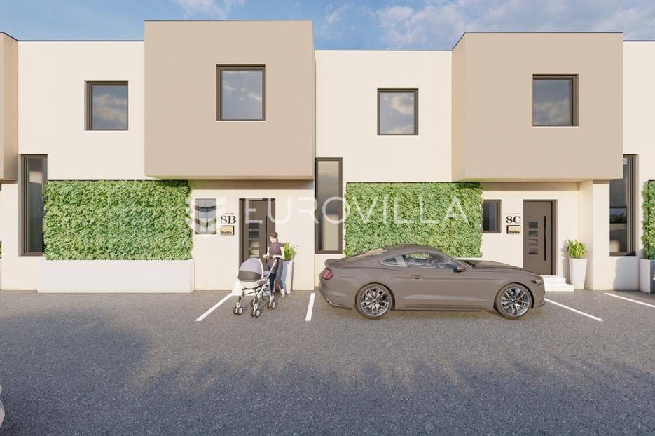 Na mirnoj lokaciji u Brezovici nalazi se novi projekt luksuznih kuća u nizu. U projektu je ukupno osam kuća, a svaka ima vlastiti vrt i pripadajuća parkirna mjesta, što pruža idealne uvjete za ugodan obiteljski život u zelenom okruženju.Kuća K4 ima stambenu površinu od 84,21 m², dok ukupna obračunska površina iznosi 100 m². Pripada joj vrt veličine 47 m² te ukupno dva vanjska parkirna mjesta.Prizemlje ukupne površine 40,47 m² sastoji se od ulaznog prostora površine 3,42 m², sanitarnog čvora veličine 2,40 m², spremišta od 4,05 m² te velikog dnevnog boravka s kuhinjom i blagovaonicom veličine 30,60 m². Iz dnevnog dijela omogućen je izlaz na terasu i vrt.Na katu, ukupne površine 43,74 m², nalazi se stubište i hodnik veličine 11,27 m² iz kojeg se pristupa trima spavaćim sobama. Površine soba iznose 8,96 m², 11,56 m² i 7,63 m². Na katu se također nalazi kupaonica površine 4,32 m².Kuće se izvode zidanom konstrukcijom, s knauf pregradnim zidovima i termo fasadom od stiropora debljine 10 cm. Ugrađena je PVC stolarija s troslojnim staklom te roletama na struju. Grijanje je predviđeno putem dizalice topline s podnim grijanjem u cijeloj kući, dok je u dnevnom boravku ugrađen inverter klima uređaj. Kupaonice su opremljene keramikom prve klase, dok je u ostatku kuće predviđen parket. U fazi izgradnje ostavljena je mogućnost odabira podnih obloga u vrijednosti do 20 €/m².Planirani početak izgradnje je u ožujku 2026. godine, a završetak radova predviđen je u svibnju 2027. godine.Moguća je kupnja putem kredita.Lokacija je izvrsno povezana te u blizini nudi sve ključne sadržaje poput škole, vrtića, trgovine i javnog prijevoza.Za sve dodatne informacije stojimo na raspolaganju.