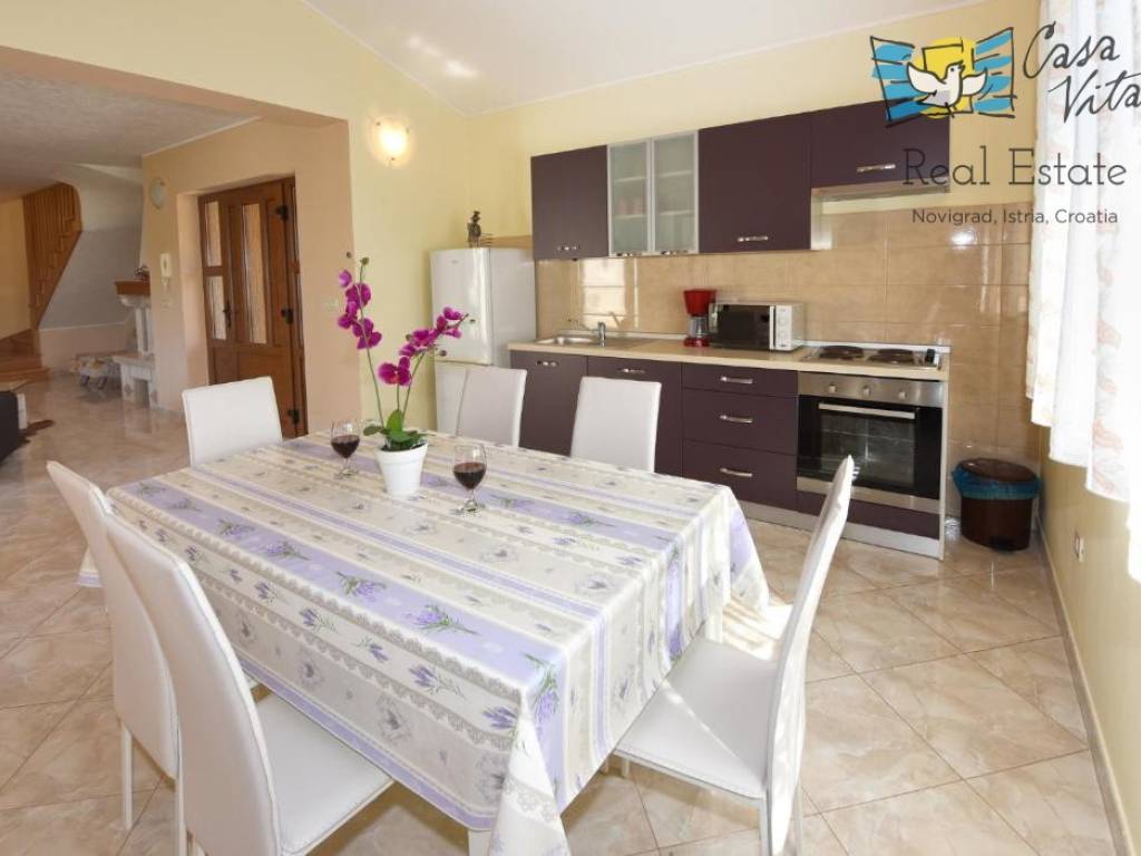 A detached house with an area of 140 m² is for sale, located in a quiet part of Poreč. This property was built in 2010 and is situated on a spacious plot of 590 m², providing ample space for comfortable living and privacy.