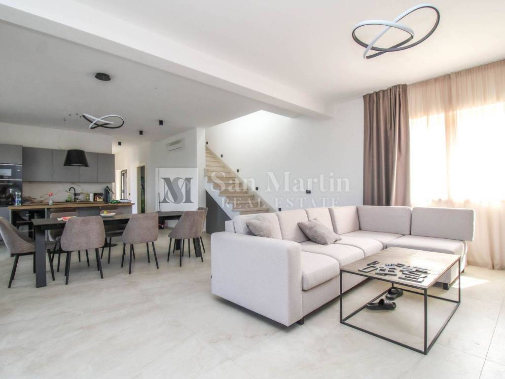 It is important to note that the house offers panoramic sea views from the ground floor and first floor! It is heated by underfloor heating and cooled by top quality air conditioning. In the garden there is a swimming pool with a paved sunbathing area and what is also very important - a garage for a tin pet.