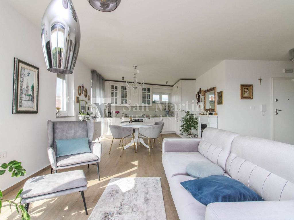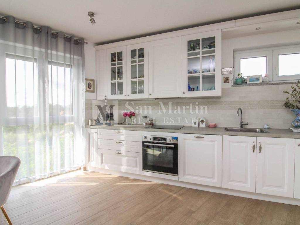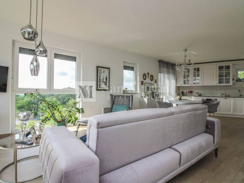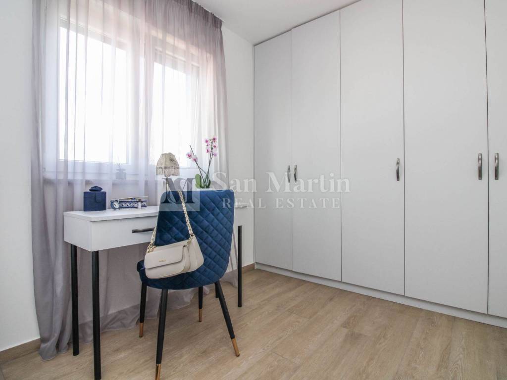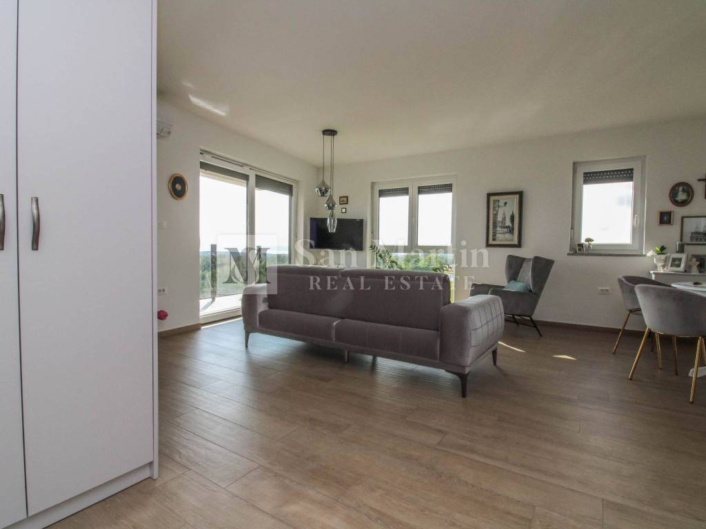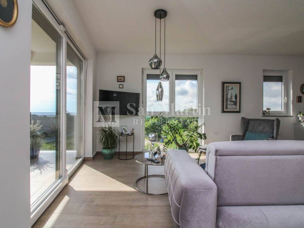 In a quiet neighborhood near the town of Poreč and the first beaches, this modern and well-furnished apartment with a total area of 96 m is for sale. Thanks to its southwest orientation, the apartment is filled with natural light throughout the day, while the panoramic sea view adds both value and a special atmosphere.