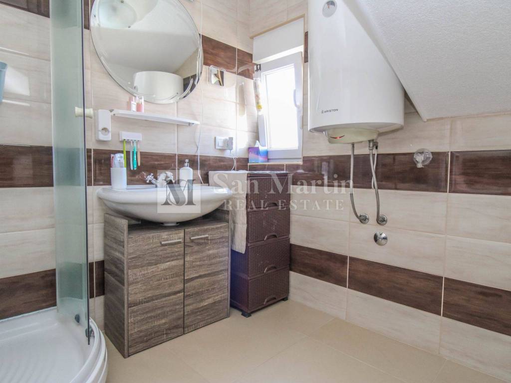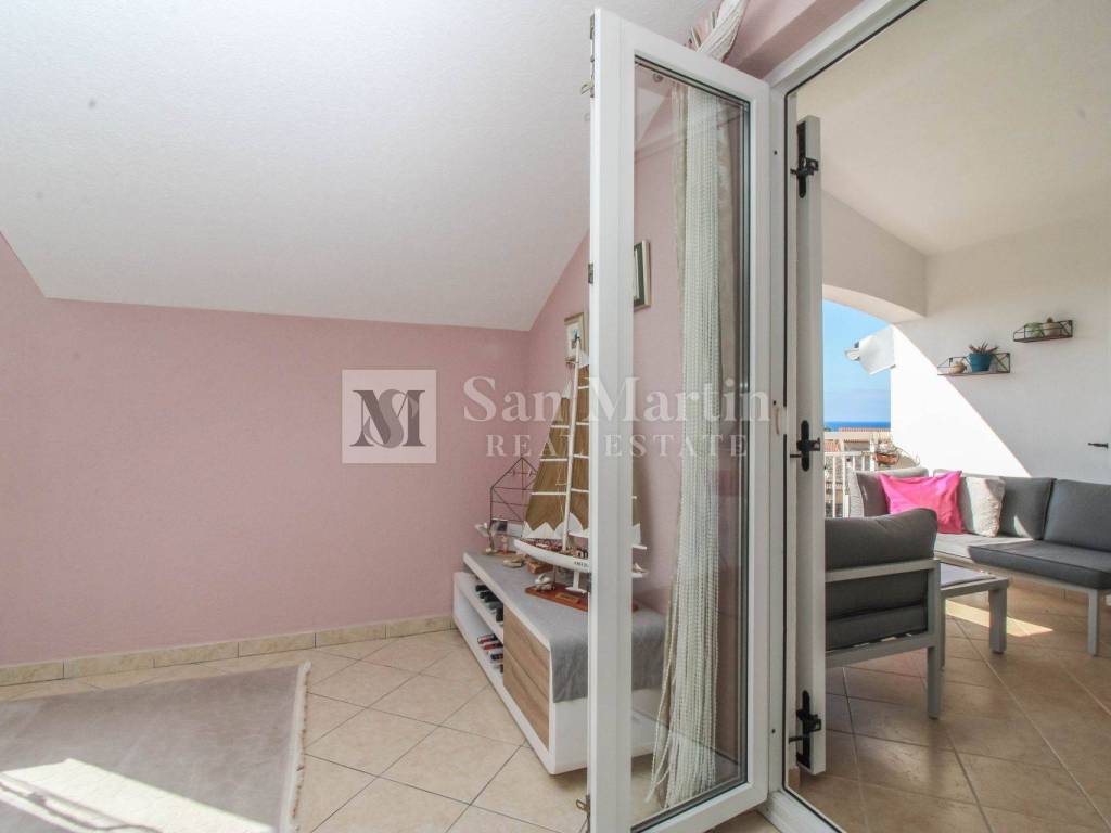 Near the sea, in the attic of a small residential building, is this nice apartment with a total area of 71.17 m2. The property consists of an entrance hall, living room, kitchen and dining room, and 2 bedrooms.