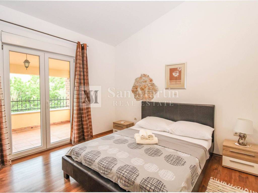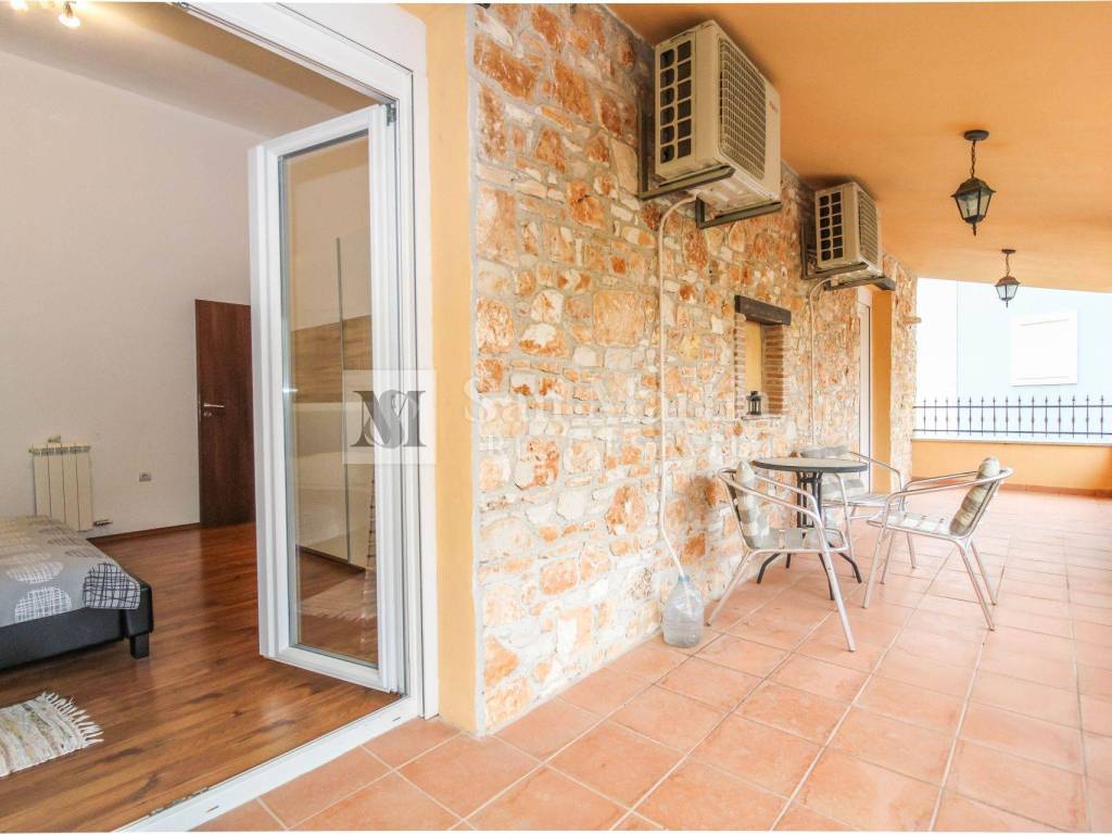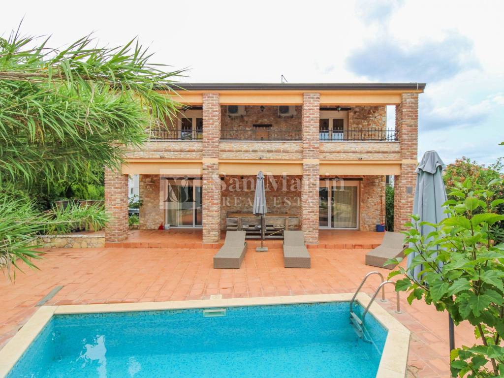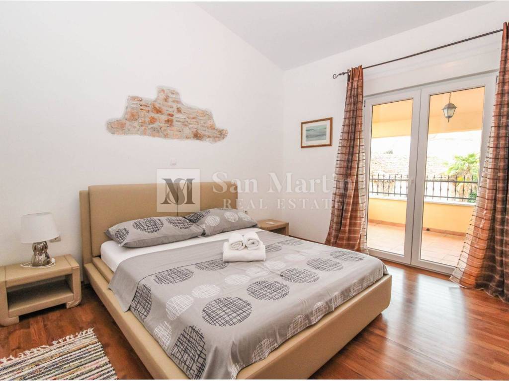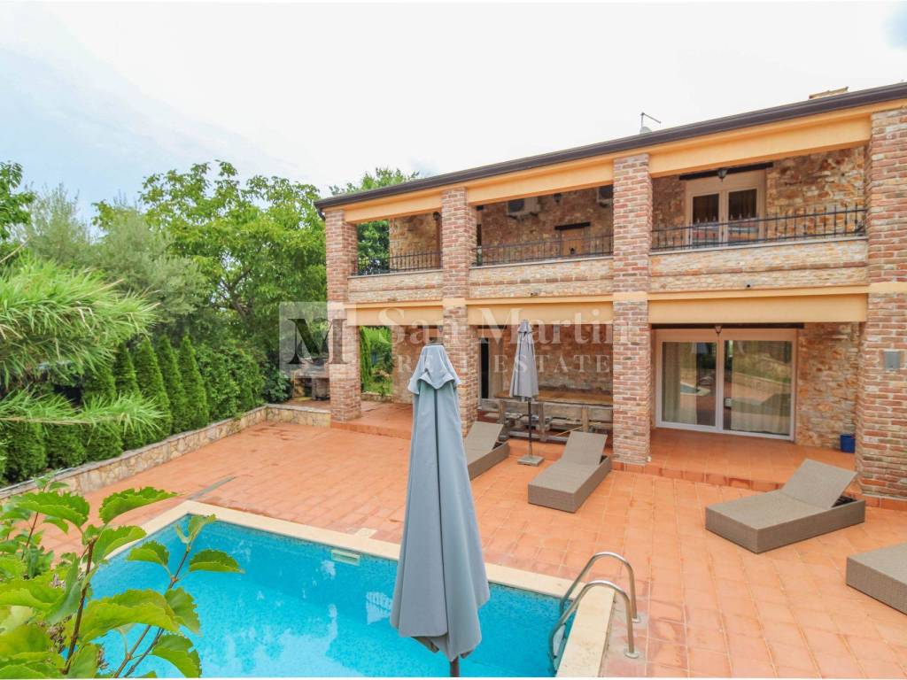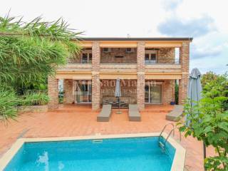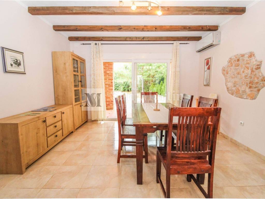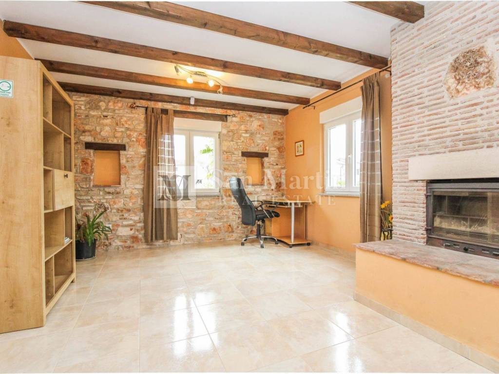 In a small town not far from Poreč, a detached house with a total area of 200 m2 is for sale. The house is partially covered with stone and furnished in a rustic style. The property is located on a plot of land of 555 m2 and is spread over two floors.