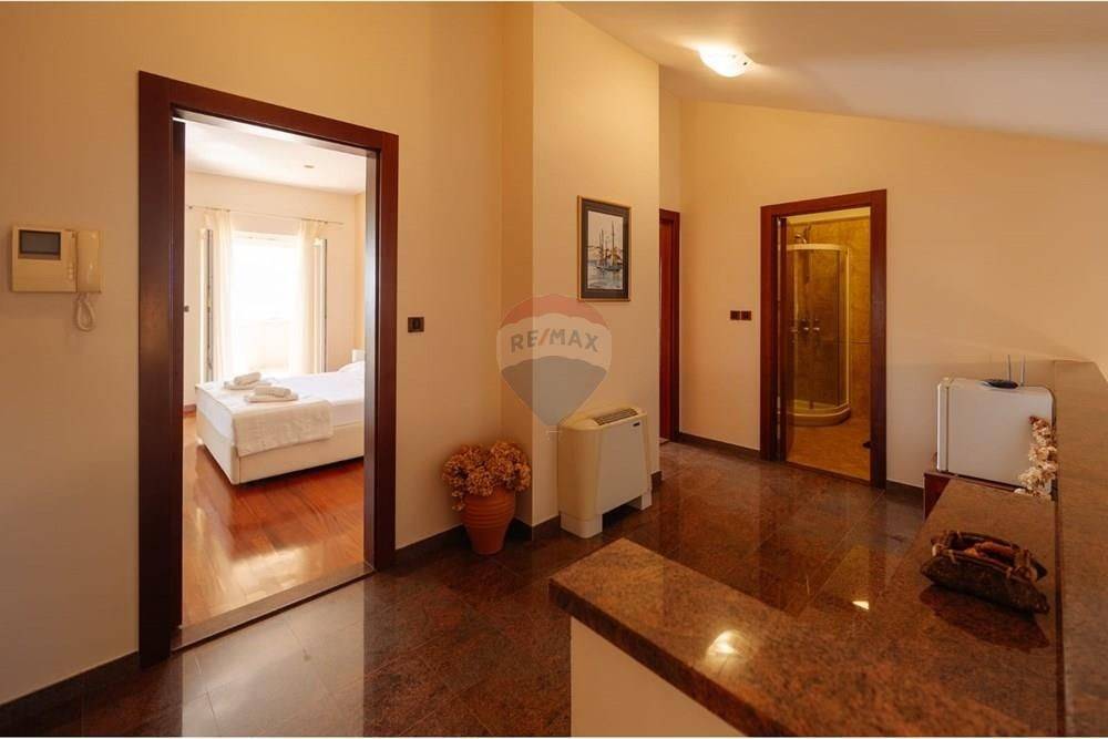 A beautiful luxury villa in Kožino near Zadar is a true oasis of peace and privacy. Located 200 m from the sea, this fully equipped villa has 6 bedrooms located on the ground floor and first floor. The villa has 5 bathrooms in total, and on the ground floor there is a large living room, dining room and modernly decorated kitchen. The living room leads out to a spacious courtyard with a 72 m2 swimming pool and garden. On the first floor of the villa there is another living room with a library and children's playroom, as well as a spacious 50 m2 terrace with a beautiful view of the sea. In the basement of the villa there is a gym and laundry room. The villa also has a garage with three parking spaces. The spacious lawn around the villa is perfect for children's play, football and other activities in the fresh air.