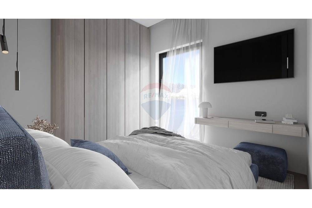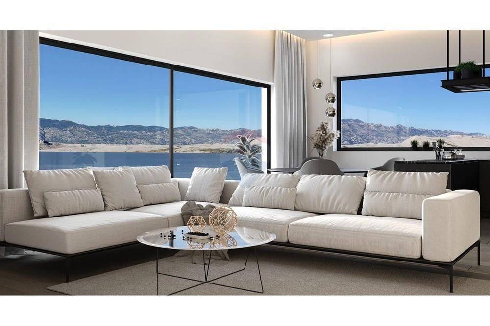 Luxury apartment for sale in a new building in a building with 4 residential units. Located in an excellent location overlooking the sea and the Velebit mountain. The apartment consists of an entrance hall, hallway, bathroom, toilet, TWO bedrooms, kitchen and dining room, and a living room with access to a spacious terrace from which you can enjoy the beautiful view.