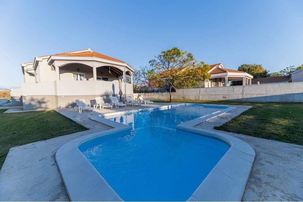 House for sale, basement and upper ground floor, gross area 278 m2 with outdoor pool and garden gazebo, on a plot of land of 1093 m2, in a quiet part of Smilčić, surrounded by nature, with a view of Velebit.