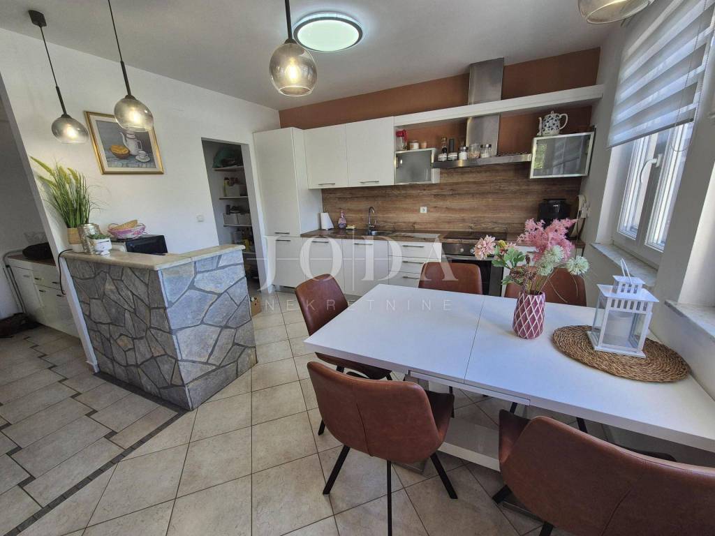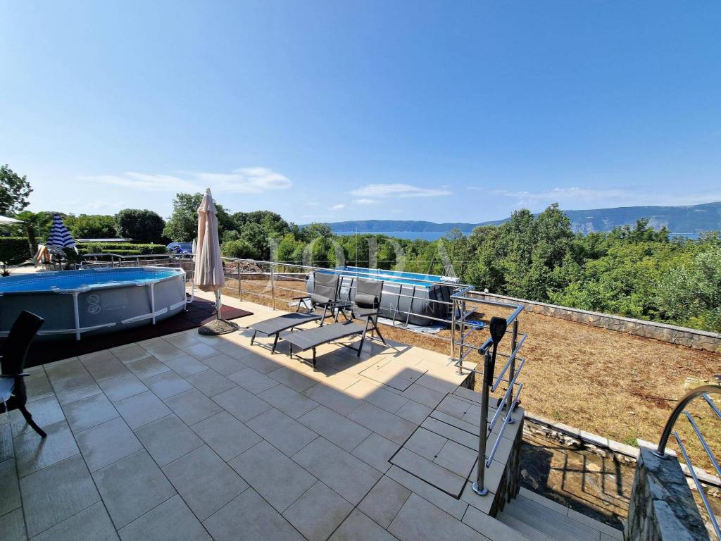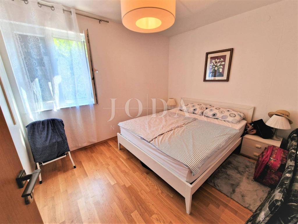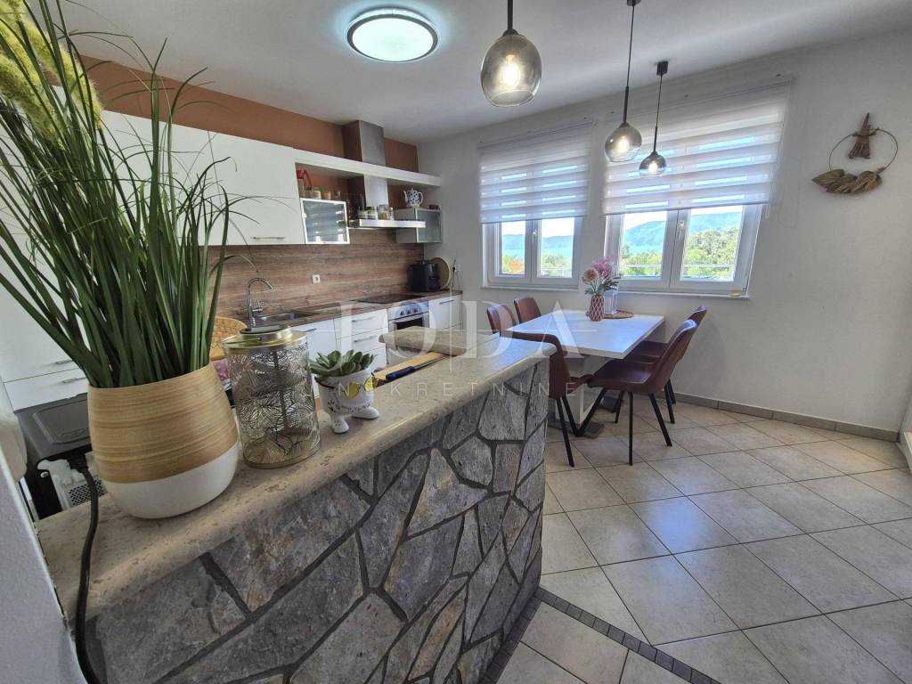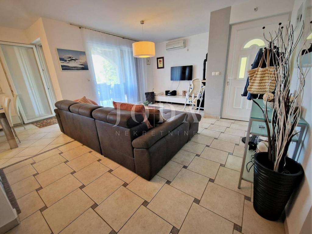 For sale is a furnished ground floor apartment with a garden and a beautiful sea view, in the vicinity of the town of Krk. Town of Krk surroundings, for sale is an apartment of 72.57 m2 located on the ground floor of a smaller residential building. It consists of a living room, a kitchen with a dining room, a storage room, a bathroom, two bedrooms and a terrace of 40 m2 with sea view. The apartment is air-conditioned with possibility of pellet heating, it is furnished and move in ready. It has a garden of 200 m2 and a storage room located next to the parking. Quiet location 600 meters from the sea.