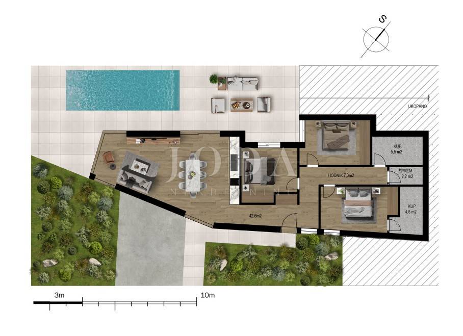 The semi-detached houses are located on a quiet hill in Crikvenica. Surrounded by Mediterranean nature, they offer privacy, a view of the sea and quick access to the promenade, beaches and restaurants. The elevated location offers a wide view of the city and the Adriatic Sea.