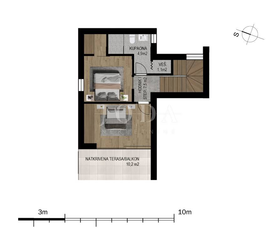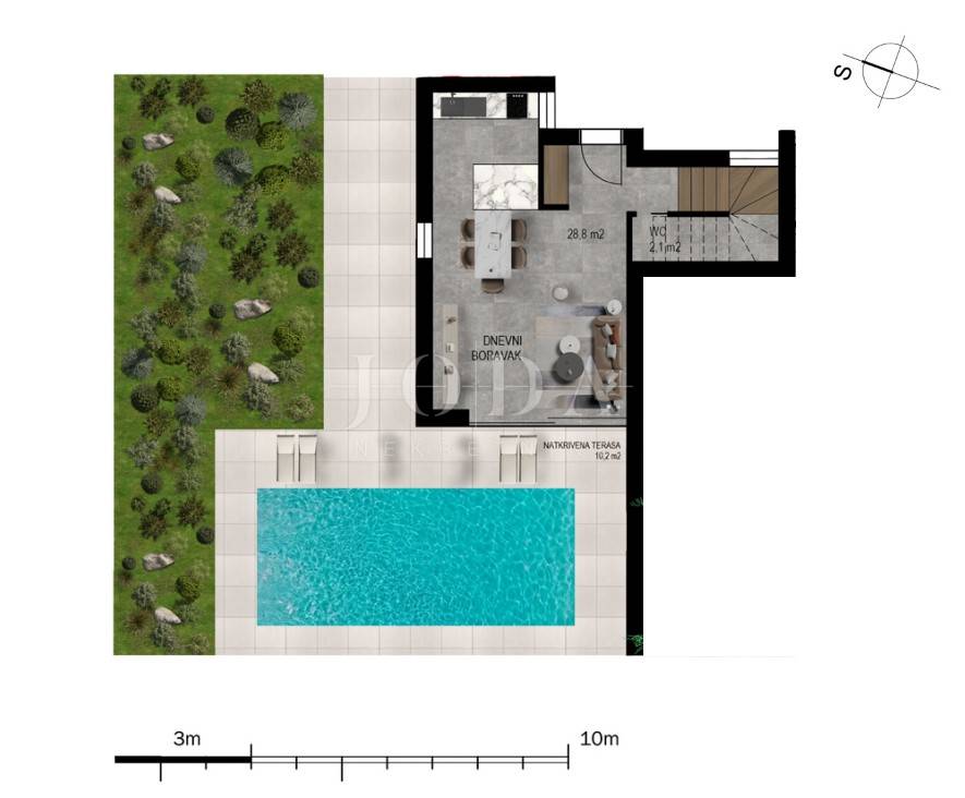 The semi-detached houses are located on a quiet hill in Crikvenica. Surrounded by Mediterranean nature, they offer privacy, a view of the sea and quick access to the promenade, beaches and restaurants. The elevated location offers a wide view of the city and the Adriatic Sea.