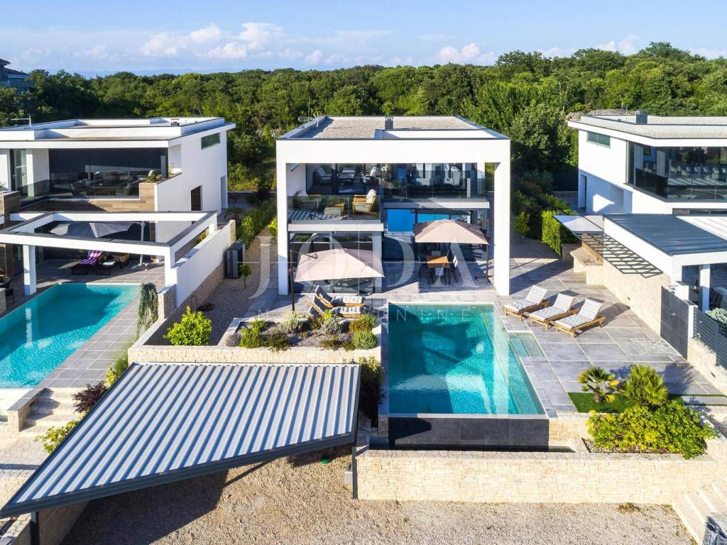 For sale is a modernly decorated luxury villa located in a peaceful environment with a private infinity pool, panoramic glass walls, sauna and spectacular views of the sea and the forest. The villa is fully furnished, decorated and ready to move into.