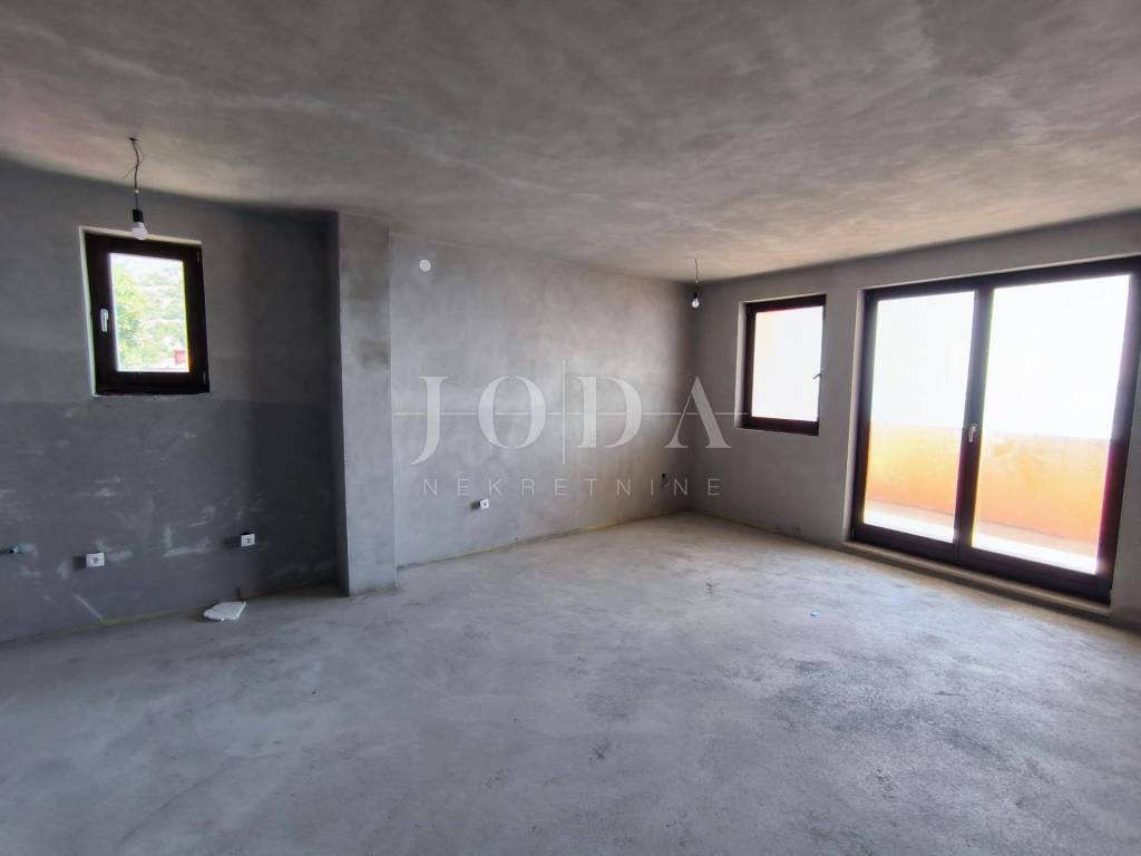 The apartment is in the construction phase and is being sold as such. Electricity, water, sewerage, separator, installations for air conditioners, ceramics on the stairs, doors on the woodshed have been installed. The apartment has two rooms, a living room, a kitchen and a dining room, two bathrooms, a toilet, a room, a hallway and a large loggia of 13.80 m2.
