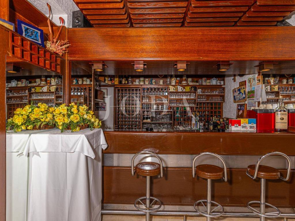 Prizemlje poslovnog prostora očarava svojom prostranošću i elegancijom. Ovdje se nalazi prostrani šank, dvije sale za sjedenje, kuhinja opremljena za poslovanje, te ugodan office prostor. Posebno treba istaknuti natkrivene i nenatkrivene terase koje omogućavaju gostima da uživaju u spektakularnom pogledu dok uživaju u hrani ili piću.