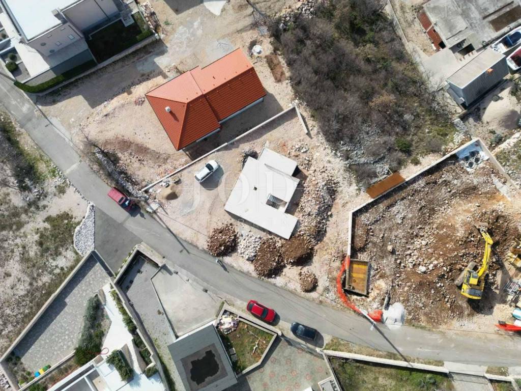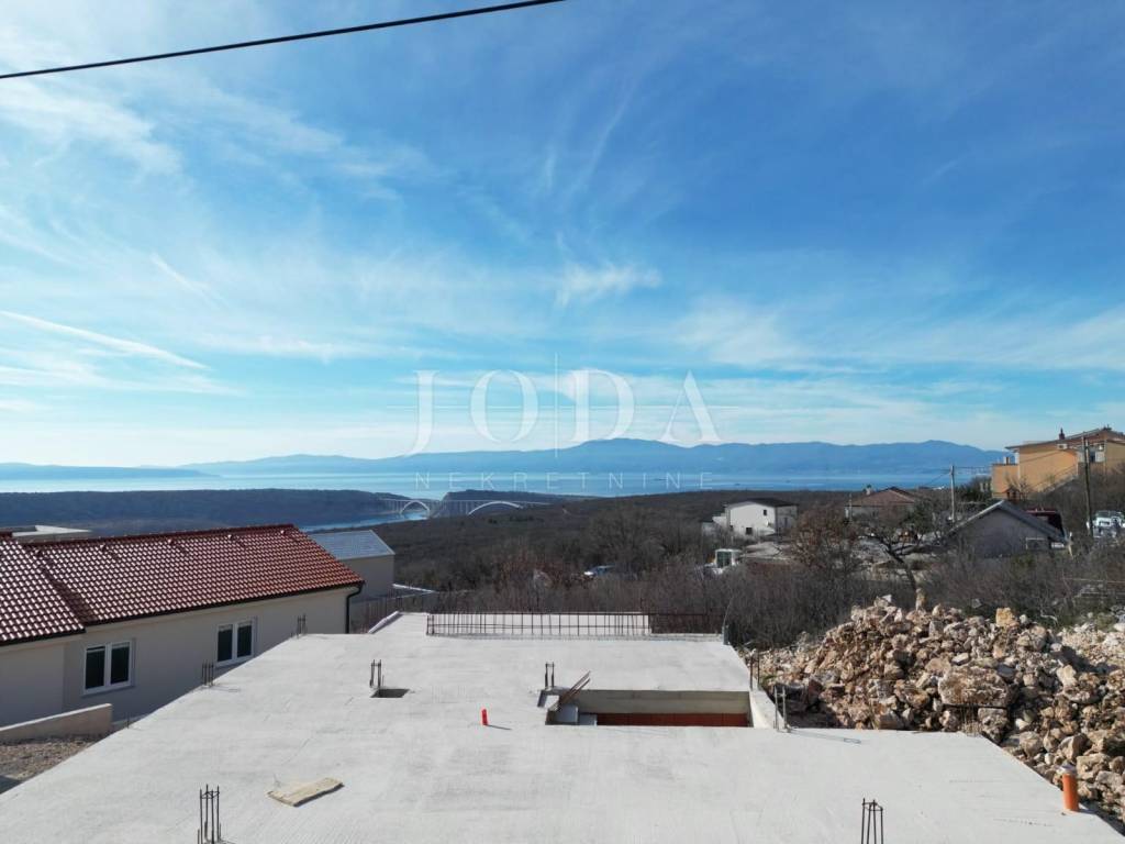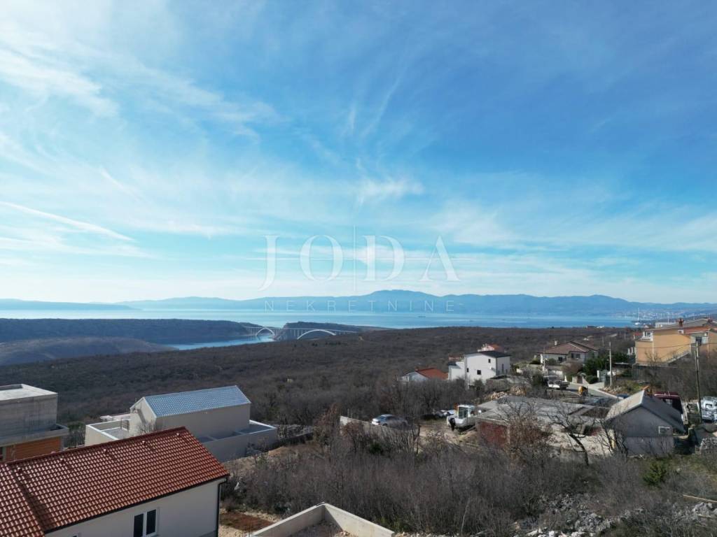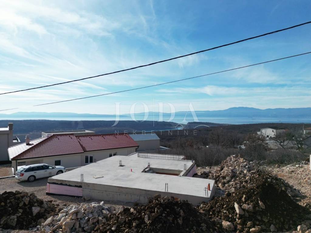 In an extremely quiet location in Šmrika, with a beautiful panoramic view of the sea, the construction started is for sale. The construction of a detached house with a total of three floors is planned on the land. A garage and utility rooms were built in the basement. A comfortable two-story apartment is provided on the ground floor and on the first floor.