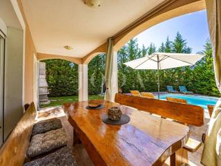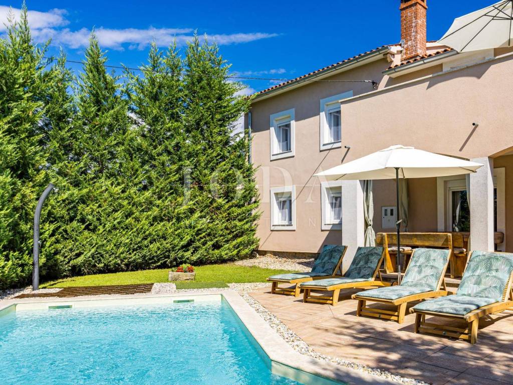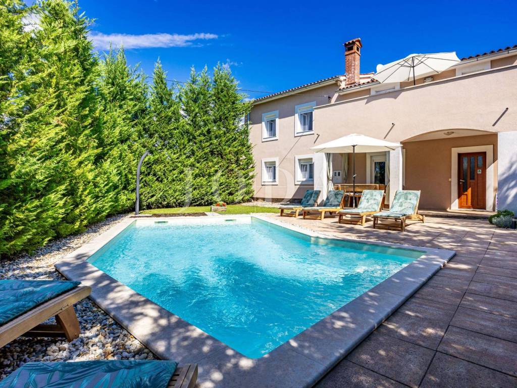 Vacation house in Istrian interland, situated in small village providing peacefull and intimate athmosphere for perfect relaxation. 3 bedrooms on upper floor with bathroom and terrace. Living room, kitchen and dinning room and toilet on ground floor. Outside the house pool, bbq and sundeck. House is used for tourism.