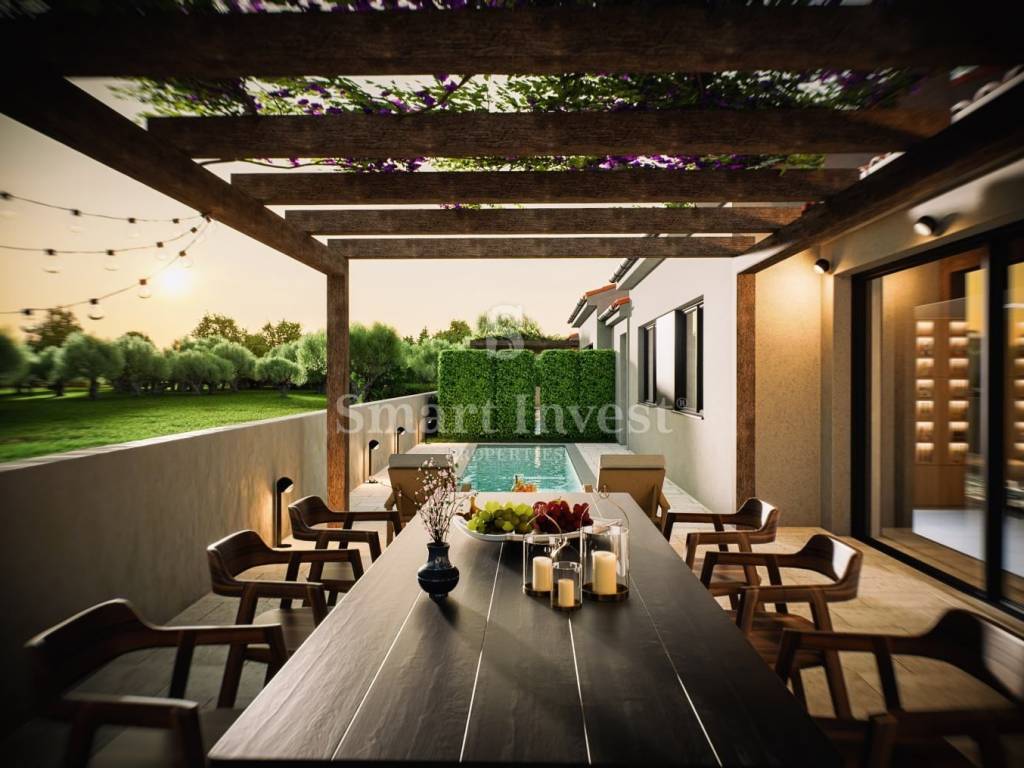On the edge of a quiet part of the Kaštelir settlement, just a ten-minute drive from the sea and charming Poreč, is this attractive terraced house - a modern, functional and energy-efficient single-family house that combines the comfort of a family home with the potential for an excellent investment.