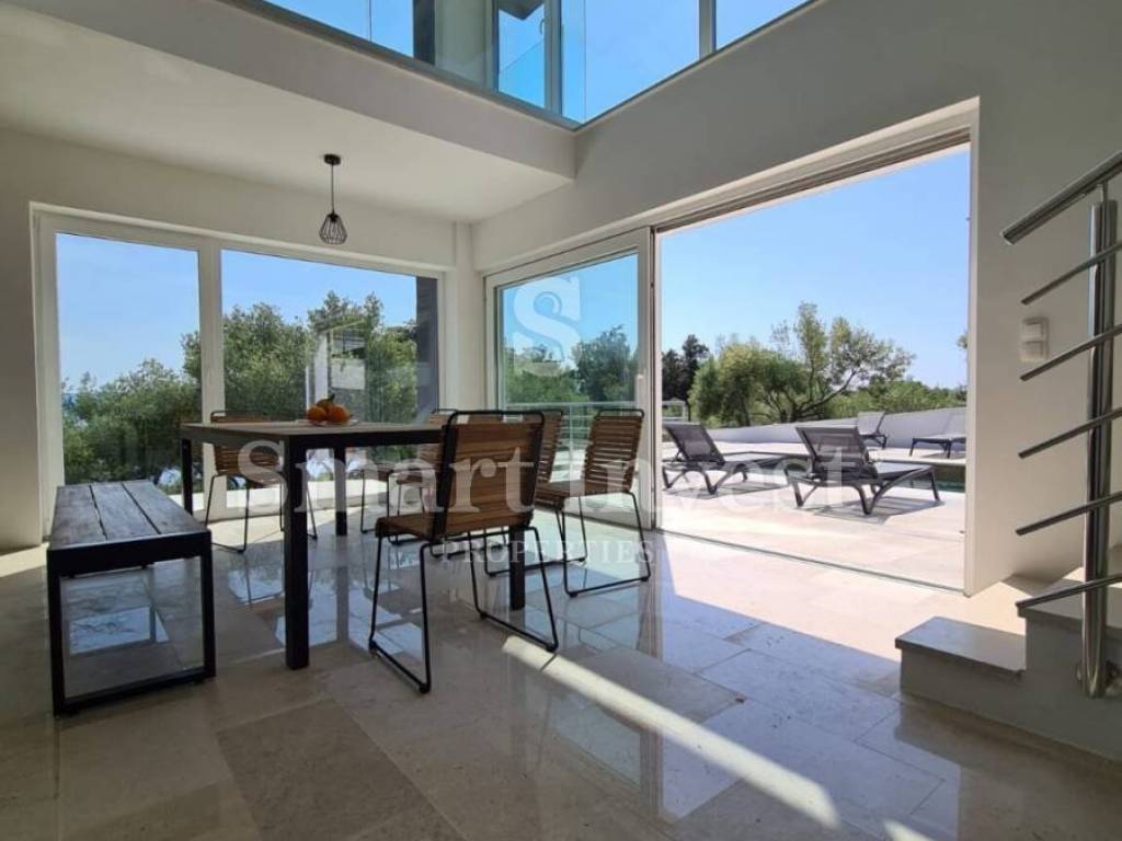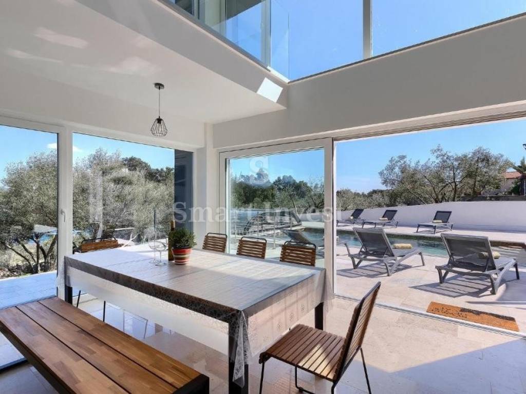 The villa has a modern design of exterior and interior, the emphasis is on the open space with large glass walls that ensure a beautiful view of the sea from every corner of this special villa, but also enough natural light. Air conditioners are installed in every room, while a closed fireplace is in the living room for additional heating and pleasant ambience. The house was built with top quality materials and is equipped with functional furniture.