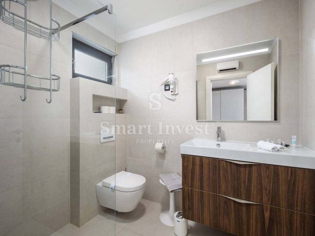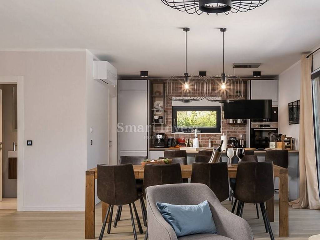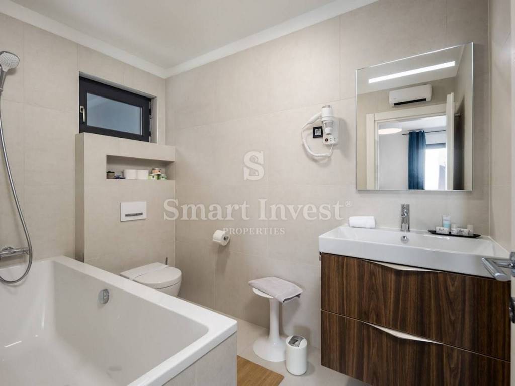 In addition to the elegant living room, dining room and fully equipped kitchen, the ground floor also has a separate toilet and 3 comfortable bedrooms with double beds. Two bedrooms have en-suite bathrooms, while another separate modern bathroom belongs to the third bedroom.