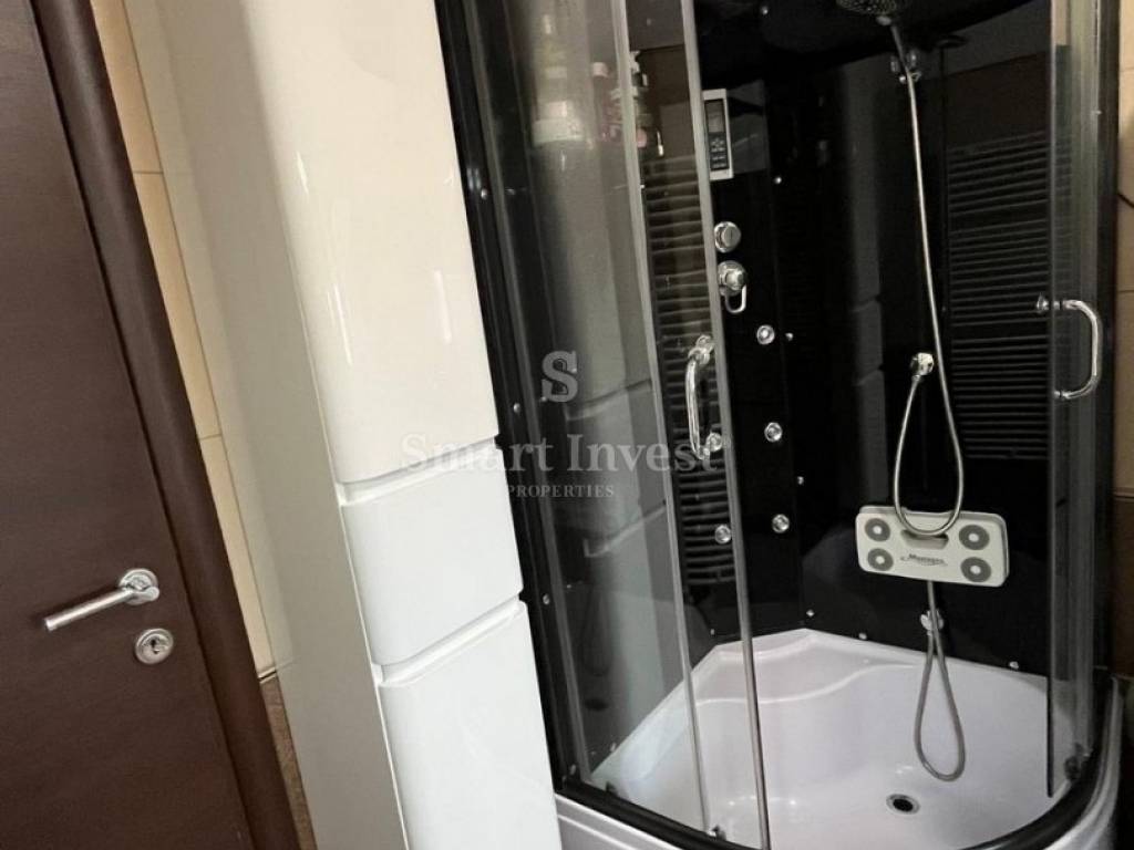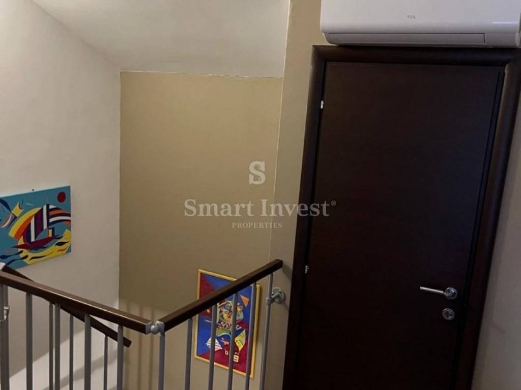 The apartment extends over the second floor and the high attic, offering exceptional comfort and privacy. On the lower level there is an open-space kitchen, dining room, and living room with access to the balcony. There is also a bathroom equipped with a hydromassage bathtub and shower, and a large bedroom with its own balcony, further enhancing the sense of comfort.