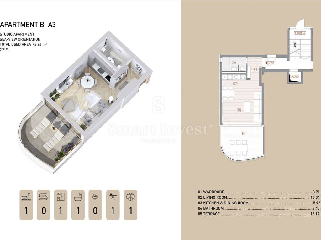 Owning an apartment in this top-class complex provides you with a comfortable and modern living space and the luxury of a micro-location that seamlessly integrates the proximity of nearby beaches, culinary delights in renowned restaurants, relaxing moments in the SPA and fitness center, as well as the proximity of a diverse range of boutiques and shops. It is a lifestyle that combines practicality with the appeal of life on the coast.