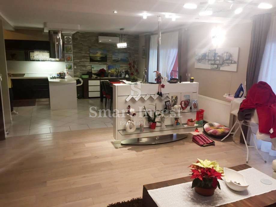 The apartment is sold with complete furniture (or without, by agreement). It has 4 air conditioning units and central heating via city gas, anti-burglary doors, and a video intercom. The building was constructed in 2011, and it has very good thermal and sound insulation.