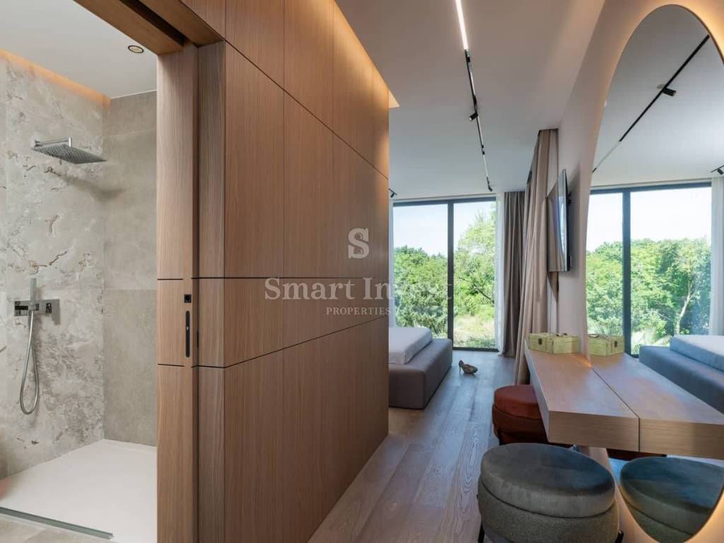 A new modern designer villa of 208m2 (133m2 living area and 60m2 swimming pool) is spread over a plot of 892m2 and is located in a quiet place on the eastern coast of Istria, known for its beautiful beaches and privacy.