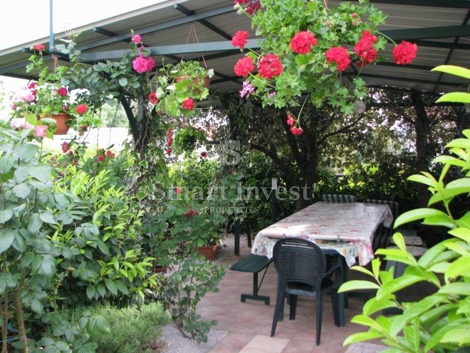 The yard of the house is nicely decorated with Mediterranean plants and fenced with decorative concrete posts in combination with a forged iron fence. There are 2 large outdoor fireplaces, a large gazebo of 20 m2 under which there is a table and benches for 15 people, a tavern of 9 m2, parking arranged for 5 cars and a double open covered garage.