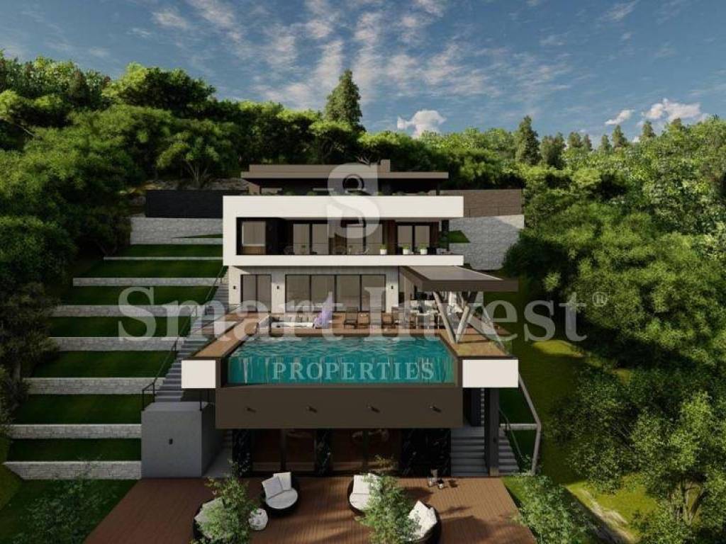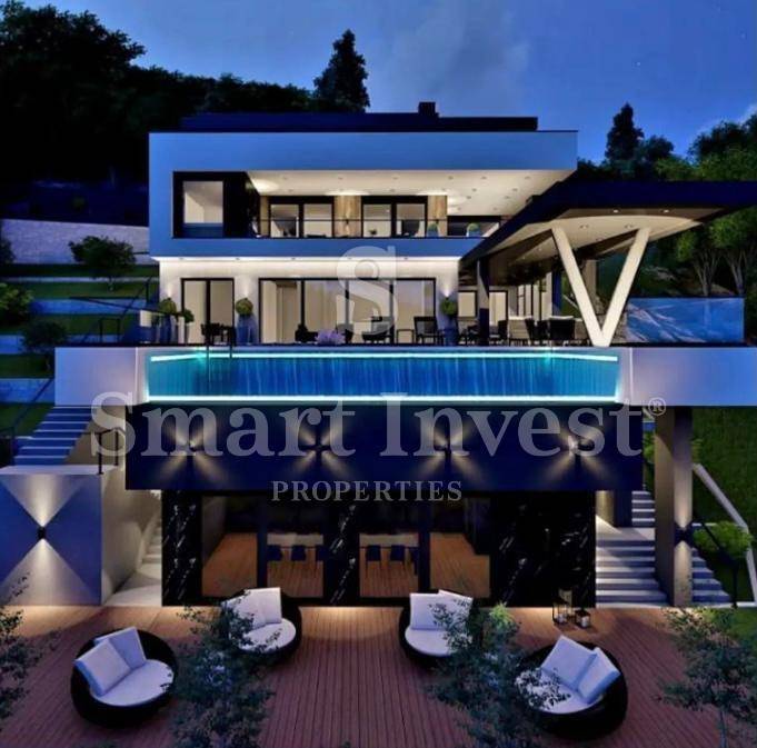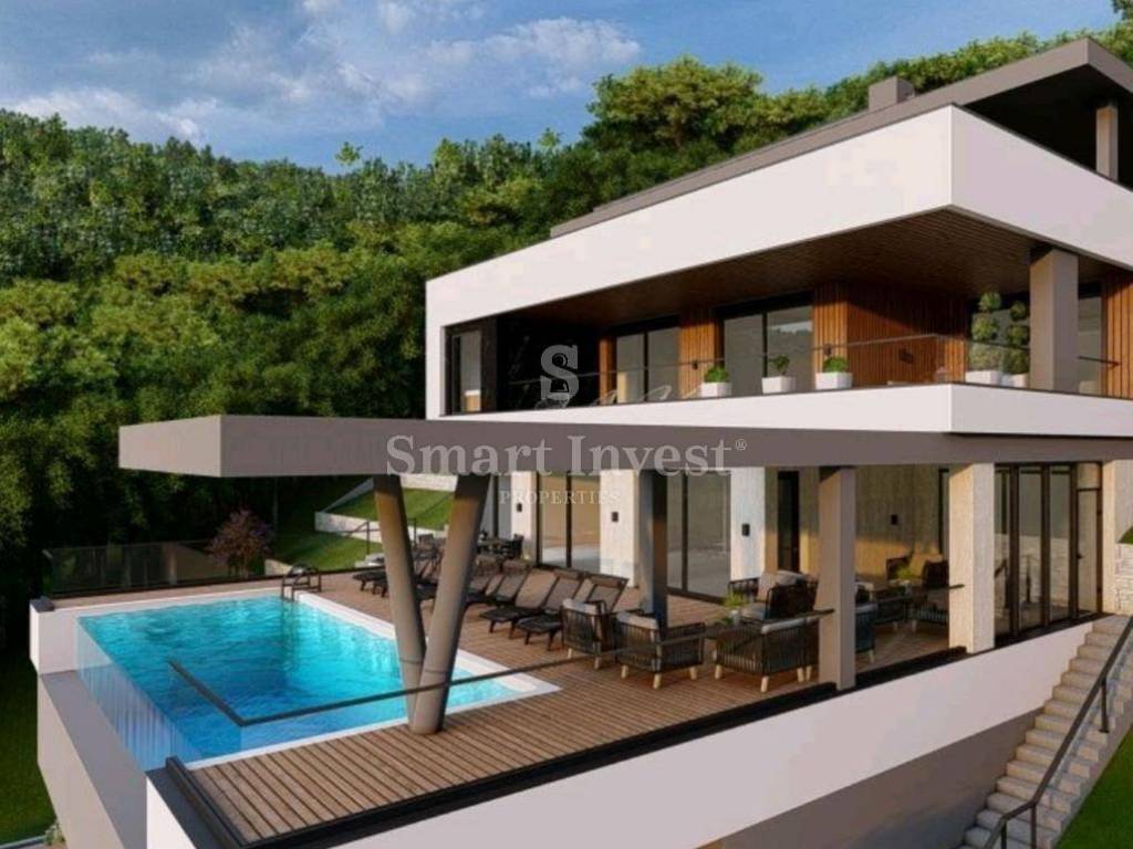 OPATIJA - IČIĆI, na prodaju je građevinsko zemljište s građevinskom dozvolom za modernu vilu s bazenom i prekrasnim pogledom na more, na lijepoj mirnoj lokaciji okruženoj prirodom te svega deset minuta šetnje udaljenoj od mora i ACI marine.