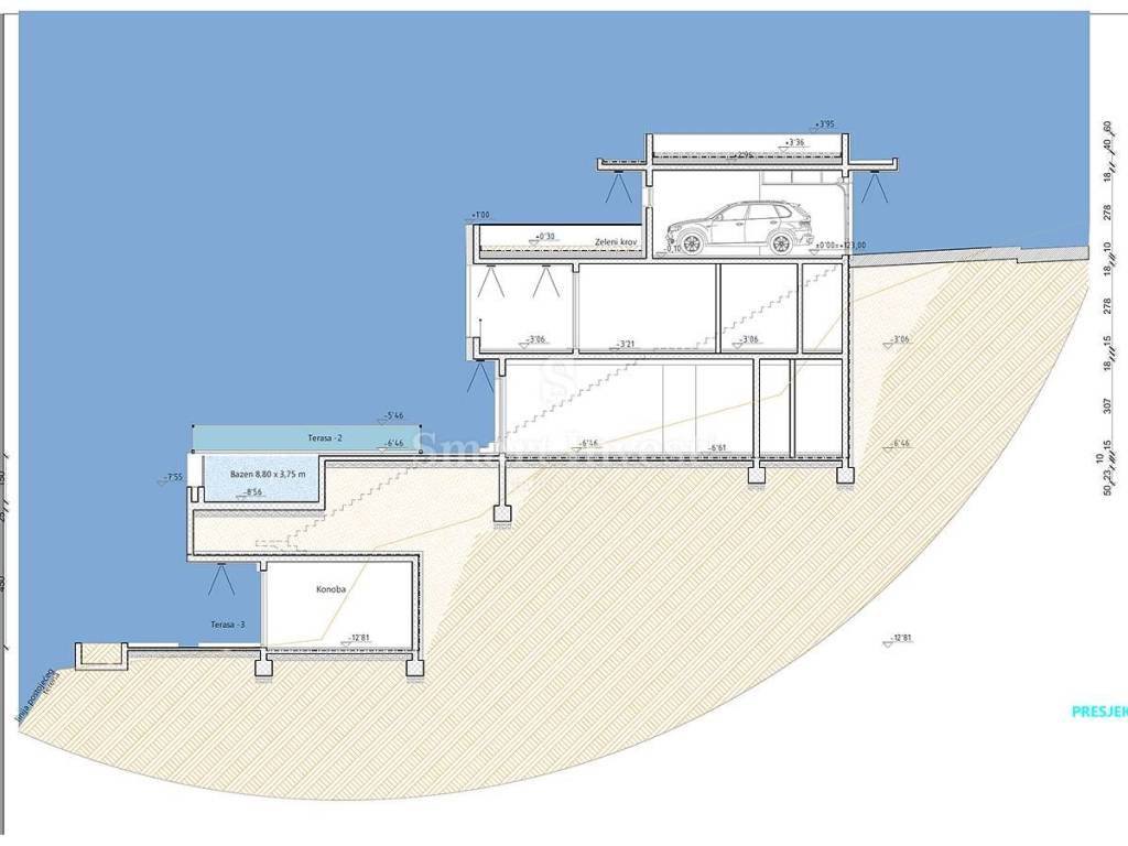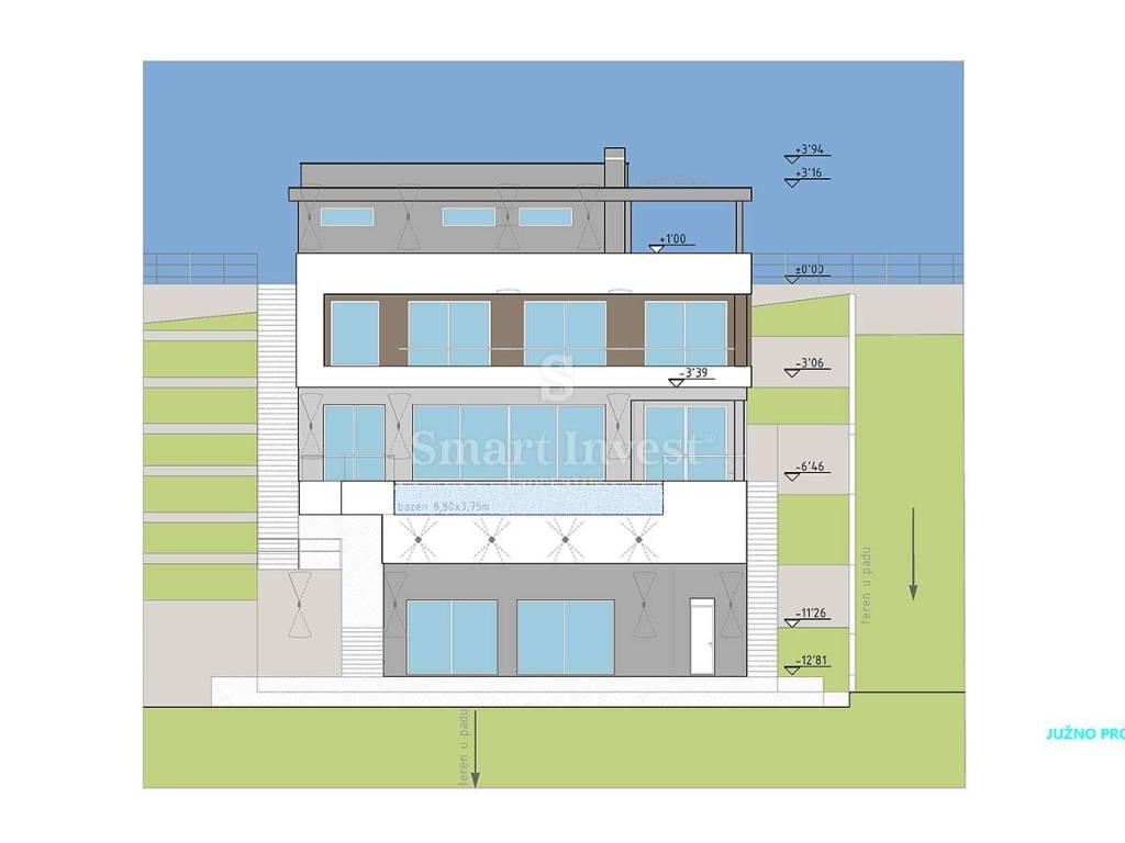 Projektom je predviđena gradnja luksuzne vile koja će se isticati svojim modernim dizajnom s elegantnim i jednostavnim linijama. Prostrane staklene površine omogućuju besprijekoran pogled na more. Predviđeno je da će vila imati 3 prostrane spavaće sobe za udoban boravak obitelji i gostiju + 1 radnu sobu, 3 luksuzne kupaonice, konobu za druženje s obitelji i prijateljima te prekrasan infinity bazen s prostranom terasom za potpunu relaksaciju.