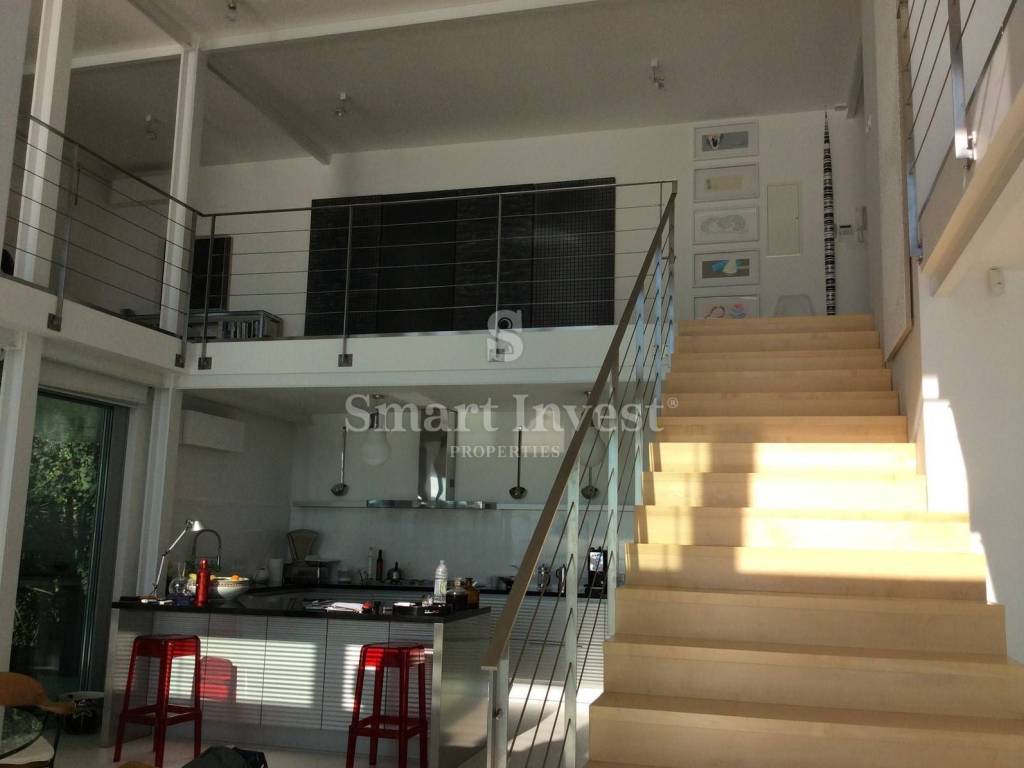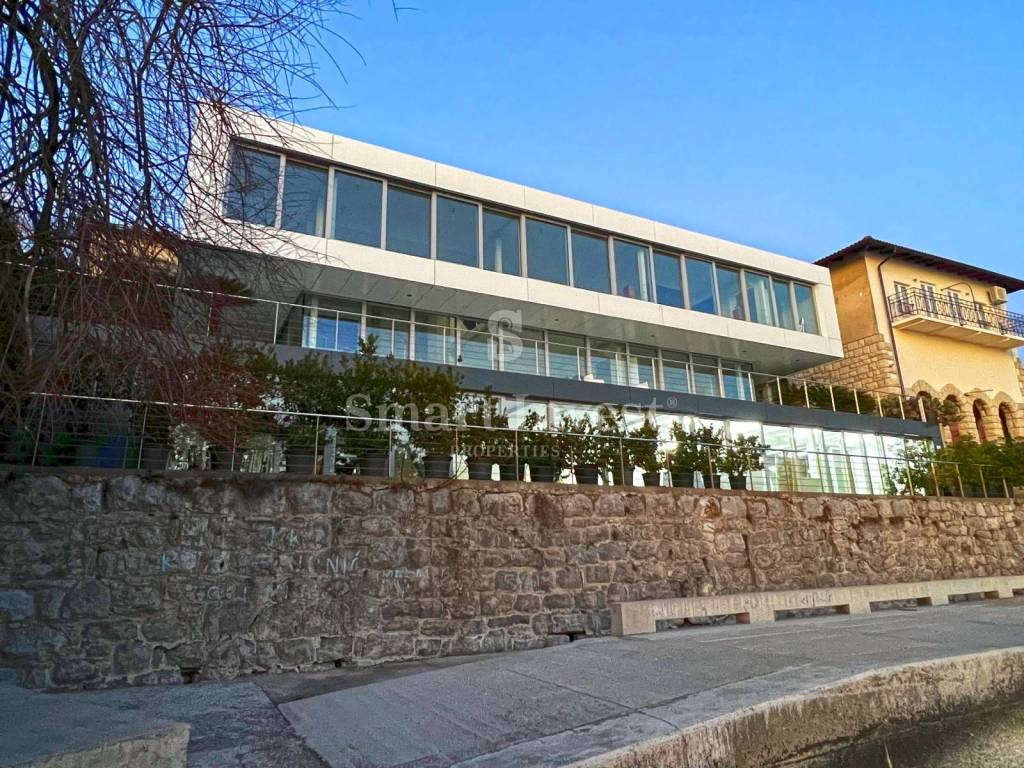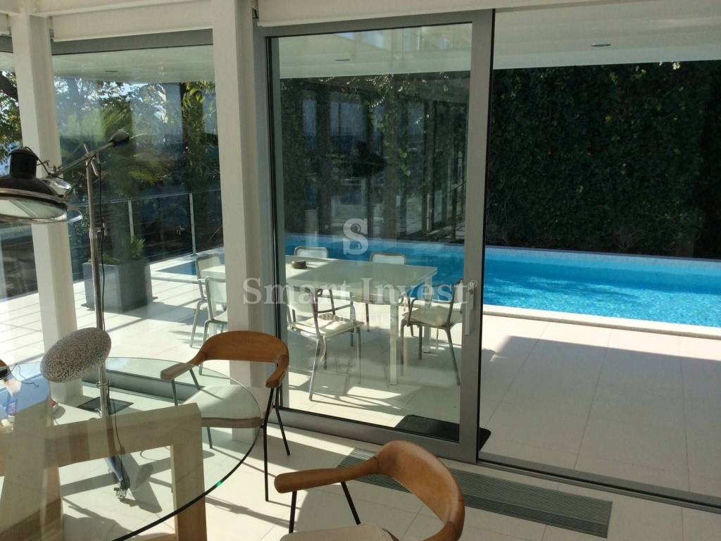 On the ground floor there is a spacious space for socializing, completely in glass with access to a terrace of 150 m2 with a pool, a small bathroom. On the 1st floor there is an open space living room with kitchen and dining area, bedroom, bathroom and guest toilet. On the 2nd floor, there are two more bedrooms, two bathrooms, and a living room. On the ground floor and on the second floor, there is also the possibility and prepariation made for making a kitchen, so three separate residential units can be obtained in this way.