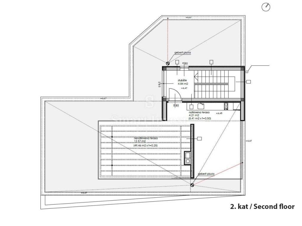 On the second floor is a gorgeous roof terrace with amazing panoramic sea view. Here has to be a lounge area and outdoor kitchen with storage.