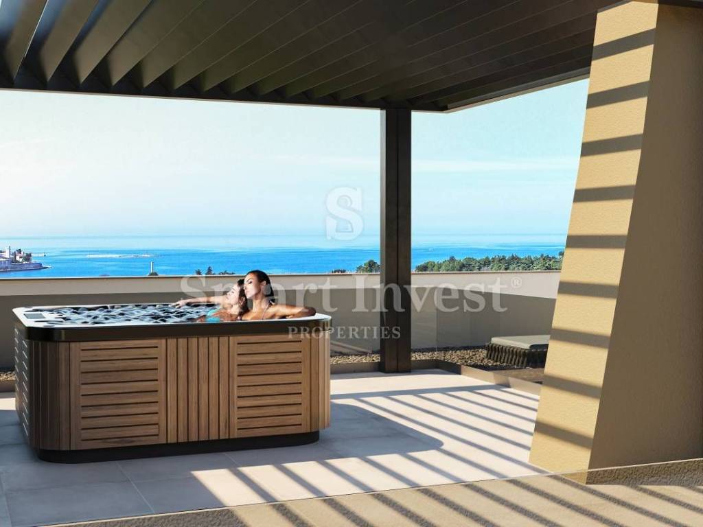 ISTRIA - POREČ, For sale is a luxury villa with a swimming pool, wellness, gorgeous roof terrace with amazing view of sea, on a great location just 5 minutes drive to the sea and beaches. Estimated time of finishing is in May 2023.