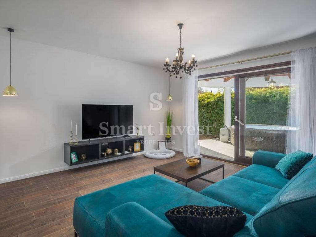 On the ground floor is a comfortable apartment 3B+LR living room with kitchen and dining area, 3 bedrooms, 2 bathrooms. The living room and kitchen have access to a spacious covered terrace with a lounge area and Jacuzzi.