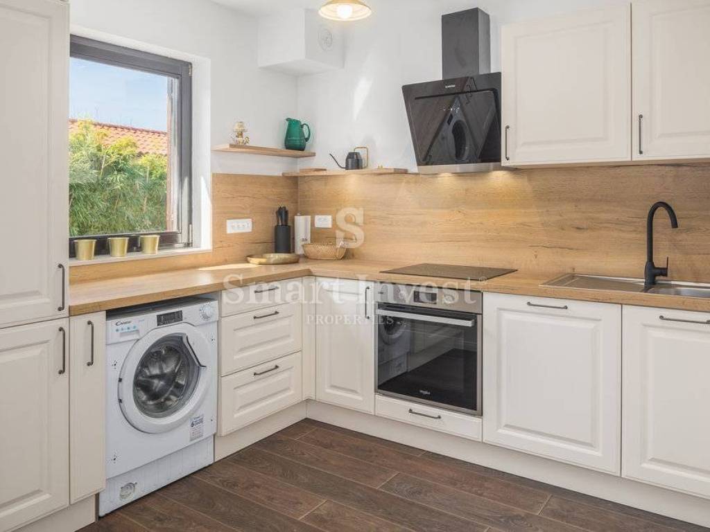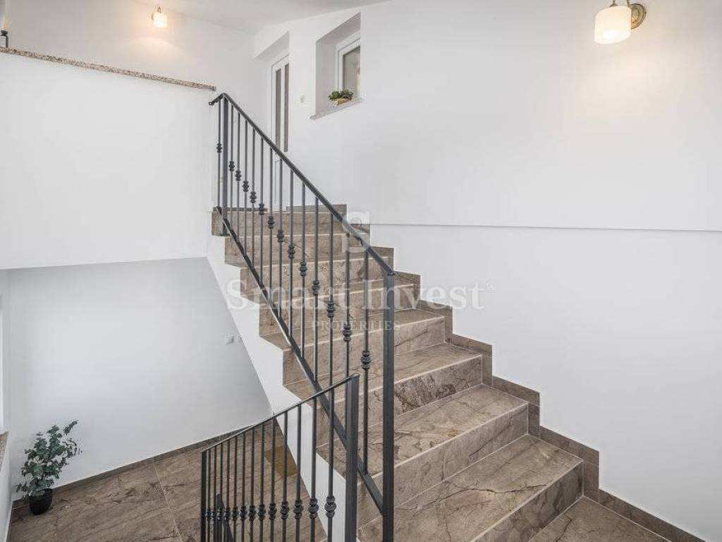 The house of 320 sqm is situated on a land plot of 856 sqm, has 3 apartments, 8 bedrooms and 5 bathrooms in total. The apartments are conected with indoor staircase, so it is possible to use the house as one residential unit for a big family or as 3 separated apartments.